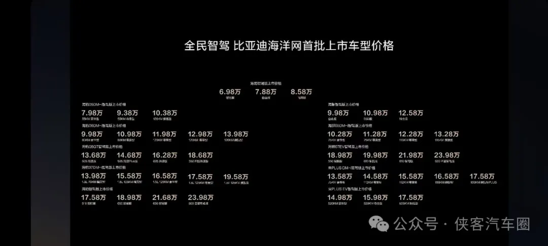 比亚迪将高阶智驾直接打到了10万级A00轿车,王传福甚至称,若不是产业链掣肘,比亚迪10万元以下车型将会有更多车型搭载天神之眼。