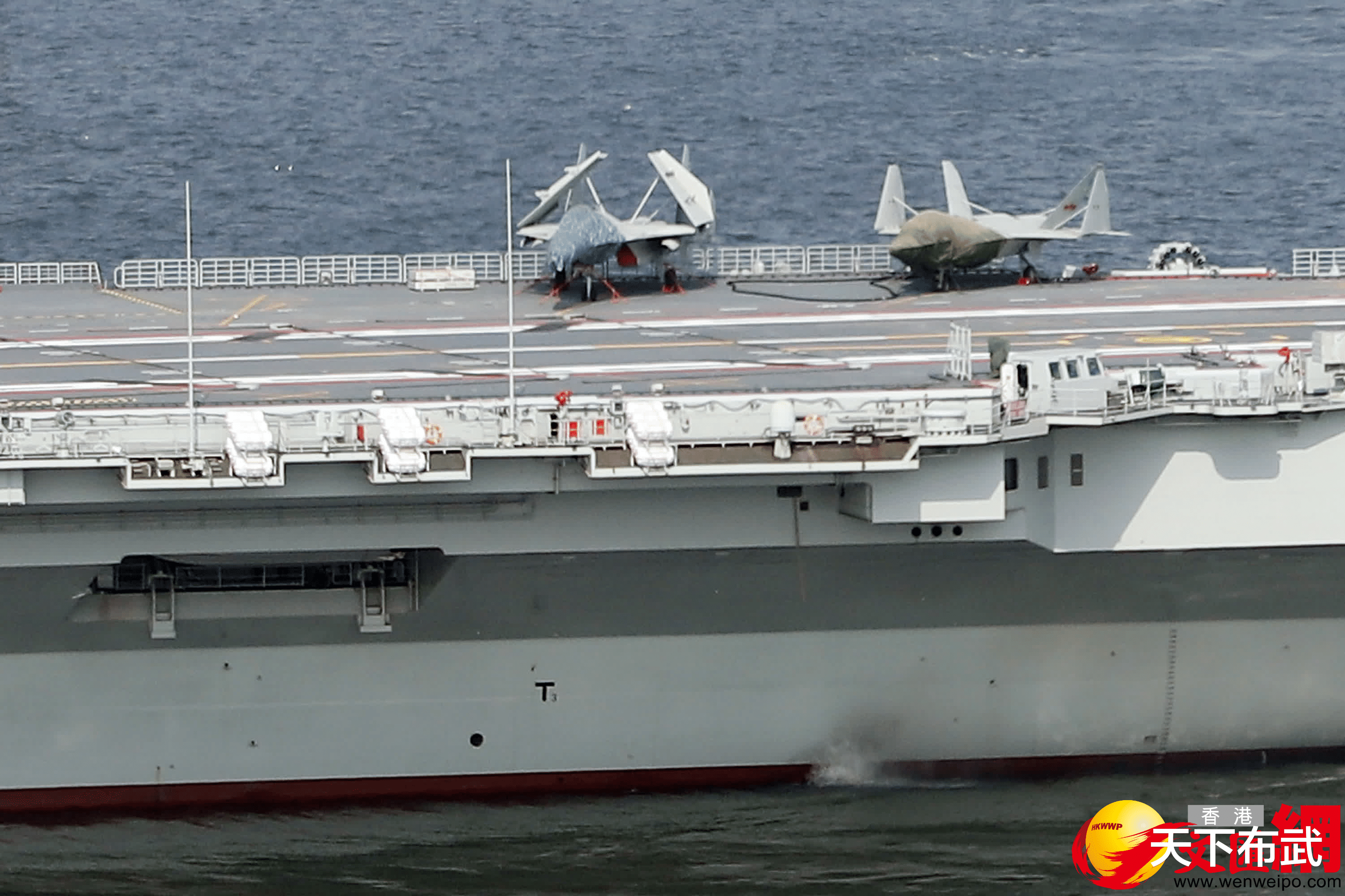 因为从此次“香港文汇网”发布的高清现场图还可以看到,“辽宁舰”在出海海试时,其甲板上同时摆放上了歼-15“飞鲨”重型舰载战斗机以及五代机歼-35的全尺寸模型,看到此情此景,苦等了一整年的军迷估计也会觉得很值了。