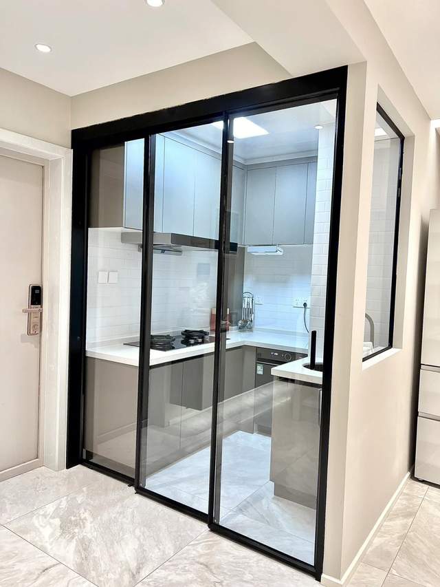 由于油烟机可以解决大部分油烟问题,所以如今越来越多的家庭将传统的木门换成玻璃门,进一步增强厨房的采光通风。