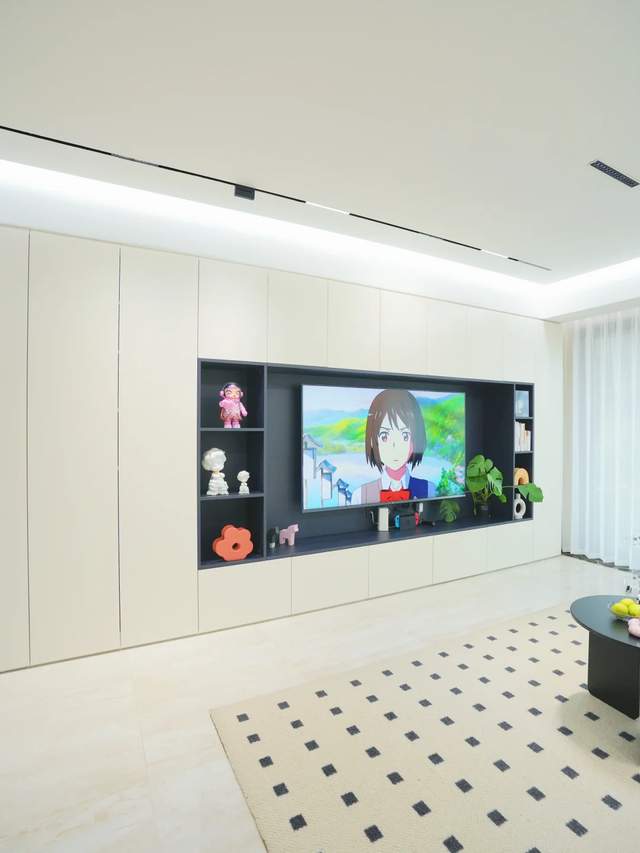 所以奉劝大家,尽量别做悬空设计,特别是有孩子和宠物的家庭,客厅的电视柜就采用落地电视柜或满墙电视柜,更实用。