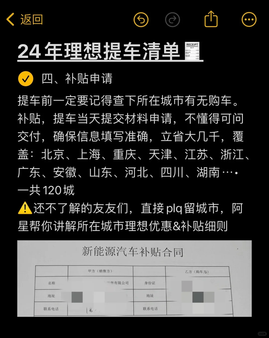 提车前一定要记得查下所在城市有无购车🚗补贴,提车当天提交材料申请,不懂得可问交付,确保信息填写准确,立省大几千,覆盖:北京、上海、重庆、天津、江苏、浙江、广东、安徽、山东、河北、四川、湖南……一共120城