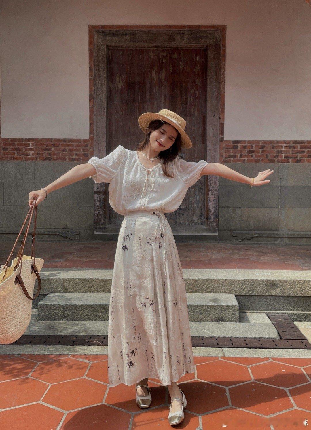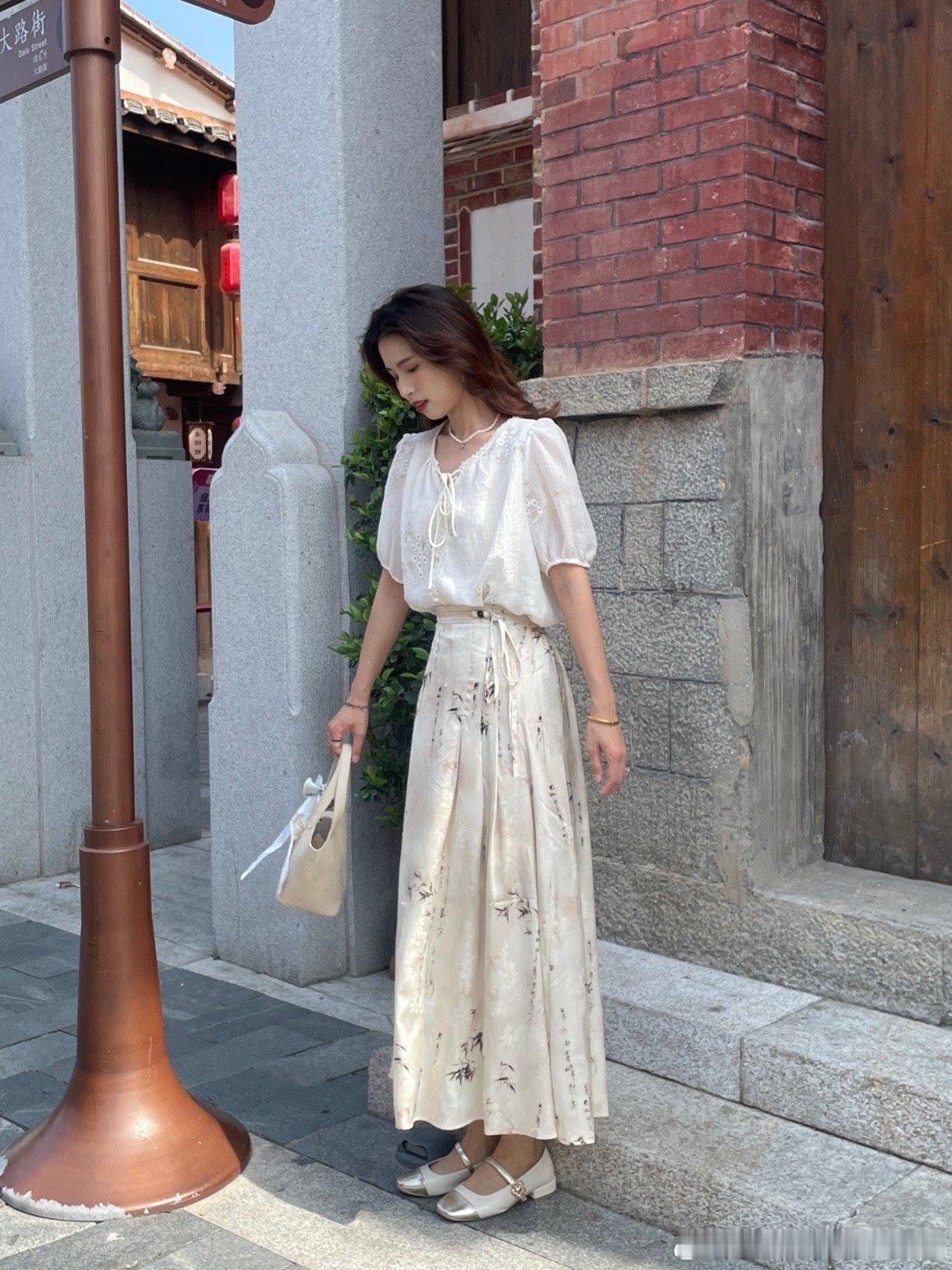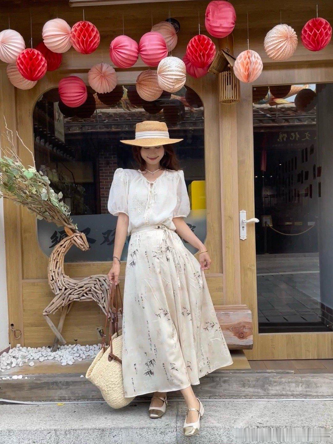 半身裙的面料是用的新面料哦,莱赛尔面料,也称天丝,上身清凉感,腰围是松紧腰。 腰围前面有一个系带的设计,然后有几颗小珠子,特别美。东方竹韵的美,整体非常整体非常文雅!