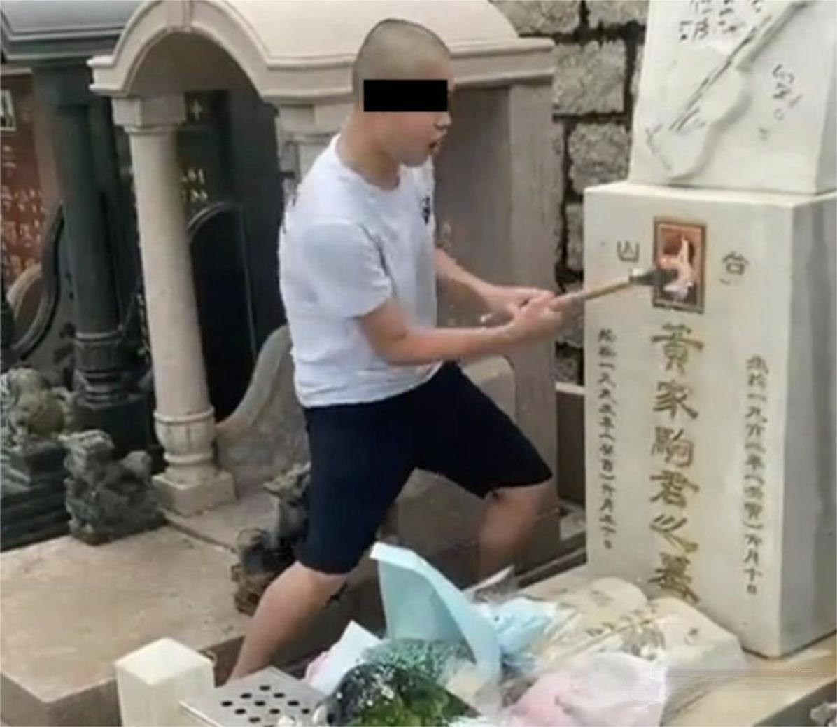毁黄家驹墓另一疑犯身份曝光!与洪金宝郭富城近百明星合影被扒,嫌疑人疑似有精神病,去年就开始谋划。如今,墓碑已经盖上白布等候维修,歌迷们跪地痛哭。 (信源:5·19黄家驹墓碑遭破坏事件——抖音百科) 作为我国香港乐坛的一股清流,黄家驹是绝对特别的存在。他俊秀的相貌为人称道,可相比起他的无与伦比的音乐才华,简直就是不足为道。 这一点都不夸张,黄家驹的音乐才华在全球范围内都是公认顶级的存在,是未来的国际巨星。他的创作范围特别广,小到甜美情歌,大到家国情怀,都能带给人灵魂深处的震撼。可惜他英年早逝,留给大家的是无尽的遗憾。 巨星迈克尔·杰克逊曾在格莱美颁奖时曾提起,想把大奖颁给黄家驹。对于四大天王而言,他更是绝对的引路人。周润发直言自己不关注音乐,除了beyond…… 歌坛巨星的陨落,是无数歌迷心中的痛,可谁曾想在他去世三十年后,竟然会遇到被人刻意损坏墓碑这种恶性事件。 5月19日,一条短视频令网友十分震惊。青天白日,两个小伙拿着道具来到了黄家驹的坟墓之前,他们此番前来的目的不是为了祭拜逝者,而是特意来搞破坏的。 其中一名小伙看起来年纪不大,一副不太聪明的样子,看起来明明没什么杀伤力,却不曾想竟然荒唐至极。 只见他提起一大桶可乐就往墓碑上撒去,原本干净的墓碑瞬间就被染上了色,但这还没有结束,随后男子不仅拿着笔在上面乱涂,还用脚使劲踹,最后更是用锤子使劲往墓碑上砸了两下,眼看上面的照片已经损毁后才心满意足地离开。 该视频一经发布立马收获了网友的愤怒,好在事发后,他们的行为被人及时发现,警察迅速赶来将人当场拿下。 令人震惊的是,这两人年纪都不大,主犯只有15岁,而一旁拍摄的人也才23岁。 没多久,万能的网友们就翻出来了两人的信息。那名15岁男孩,正是YouTube上的一名博主“光头Bob”,曾作出不少令人侧目的离谱行为,而23岁小伙姓叶,最爱追着明星要合照。 这位光头男孩可以说是恶名远扬,他自称患有自闭症,所以大家一看就知道跟别人不一样,但同时他又身患过度活跃症,因此时常跑到别人坟头“蹦迪”。 早在2023年,光头男孩的行为已经很离谱。他跑到山里,对山坟一顿输出,还将上面摆放的鲜花一扫而空,全部丢掉。 这还没结束,他又跑到庙里,将别人家供奉的先人遗像抢走,指着人鼻子大骂。这番恶劣行径早就引发了很多人的不满,大家纷纷评论他“人神共愤,不会有好下场……”,但是光头男孩劣性不改。 去年9月,他在大街上,光天化日之下,当众对女明星的人形立牌动手动脚,甚至还上嘴。面对店员的阻拦,他不仅一点不害怕,还叫嚣着让大家都记住他。 诸如此类的行为还有,很难想象这是一名15岁的男孩能干出来的,尽管如此,他也没能获得惩罚,或许正是因此,他才有底气,做出了砸毁黄家驹墓碑一事。 不可排除光头男孩和小叶的行为是为了能火一把而预谋已久,但他们这番无疑是提到铁板上了,如今海峡两岸粉丝都在要求严惩光头男孩两人,不知道事情的结果将会是如何。