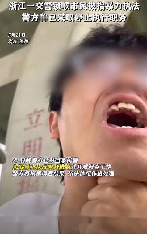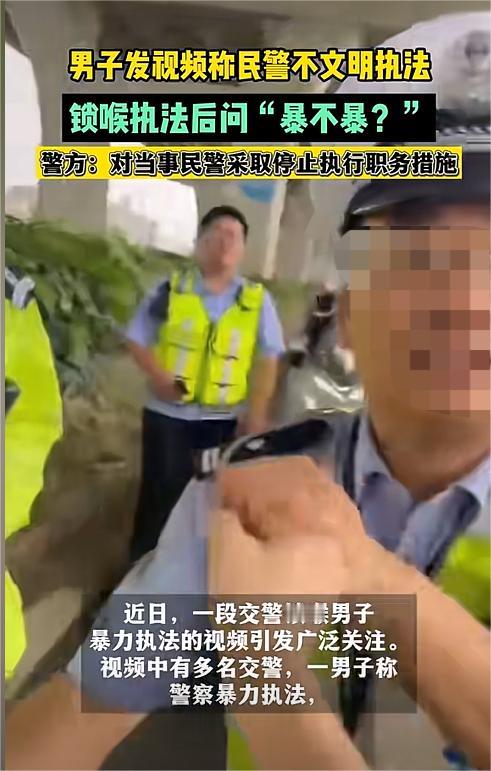 温州乐清一交警执法时锁喉男子还反问“暴不暴”?这是骨子里蔑视群众,害群之马,全网一边倒反对!官方回应来了,内幕大揭秘! (信源:温州交警“暴力锁喉”男子引关注 应重视情绪管理 避免过激执法——封面新闻) 一直以来,暴力执法问题都是国民关注的焦点。前有城管将小摊贩赶得四处逃跑、随意毁坏农民的劳动成果,后有警察不由分说殴打群众…… 有关部门按照规定执法固然有利于我国社会的美好发展,可一旦执法过度,留给人民的就是愤怒和不满。 一边是没有稳定工作、以劳动为生的百姓,一边手拿铁饭碗,专吃国家饭的公职人员。不同的生活环境造成了不同的认知,“何不食肉糜?”等问题层出不穷。 对于这种现象,我国已经十分关注,推崇柔性执法,让执法不仅有力度,还更有温度。然而就在各地纷纷整改之际,依然有害群之马存在。 近日,温州一位交警就引发了网友的不满。视频中,这位交警叔叔不同于其他人和蔼可亲的形象,反而像个笑面虎。 他面带笑容地走到司机面前,口中却不停地说:“暴力执法是吧?暴不暴?”嘴上不停地发出提问,手上的动作也没有停下,身强体壮的他一手甩开司机瘦弱的胳膊,随即大手锁住了司机的喉咙,力度之大,看起来令人十分揪心。 其实看到这个相对完整的视频,大家在为司机的遭遇感到愤怒之时,也很清楚司机的拍摄应该是早有准备,更何况视频时长特别短,掐头去尾的也看不出事情的真实情况。但尽管如此,交警的行为依然问题很大,令网友们不得不愤怒。 还有网友提出,锁喉在格斗术中十分常见,能够轻易地控制住敌人。但前提,控制的得是个敌人,而绝对不是普通老百姓。 随着网友处罚交警的呼声越来越大,有关部门也赶紧展开了调查。果然,交警的处理虽然有错,但这位司机也不是个省油的灯。 那天,交警们在路口照常进行交通秩序管理,一辆小轿车的出现吸引了他们的目光。这辆小轿车的车牌号他们很熟悉,因为已经出现过多次违法的情况了,而车主却一直没有主动承认错误,因此交警们便将他拦了下来。 这位司机也是老油条了,被交警拦下后心情就不怎么好。面对交警让他赶紧交罚款的要求,司机心中很不满,不仅不打算配合,还跟交警发生了冲突。 面对靠近的交警,男子不断伸手推搡,口中还大呼交警在暴力执法。交警顿时觉得又好气又好笑,面对如此胡搅蛮缠的司机,这位交警终于忍不住了,一股火气涌上心头,接下来便出现了开头的那一幕。 目前,处理结果已经出来,这位锁喉交警已经被停职,可是网友们的争议声并没有因此而停止。 原因在于,这位交警并不是普通人,而是有编制并且资历很深的老交警,他佩戴的三级警辅警衔就是最好的证明。 其实这件事情双方都有错误,男子违法不该逃避,交警愤怒但不该动手。 而这也引发了网友们的深思,试想若是司机带着大金链子,开名牌车,交警还会这样对他吗?这一提问直接将暴力执法问题上升到了对普通人的歧视之上。 对于这个问题,大家怎么认为?