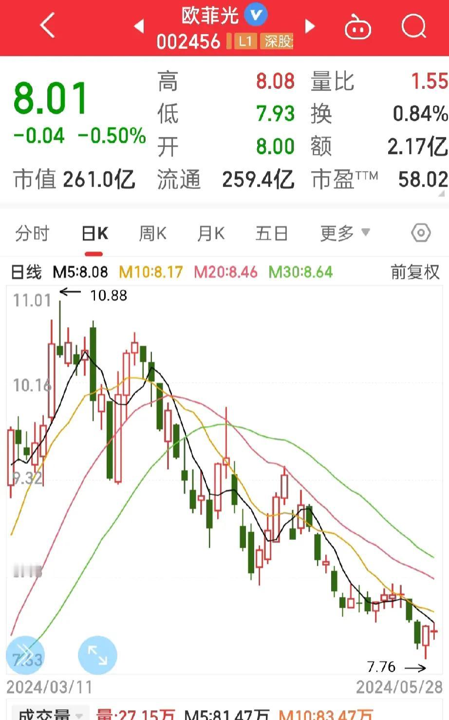 有点怕股市开盘, 两只破股太垃圾了, 长时间的天天下跌, 看看指数涨了多少点? 股票却天天跳水, 这样的股市太没意思, 真TM无趣, 欧菲光, 注定是要亏光本金吗? 那还真需要一段时间哦! 我才不怕,来吧!! 长安汽车, 天天下跌,也是牛的很! 让人气急败坏,心神不宁! 哎哟! 吐槽一下,感觉爽多了!! #股市分析#