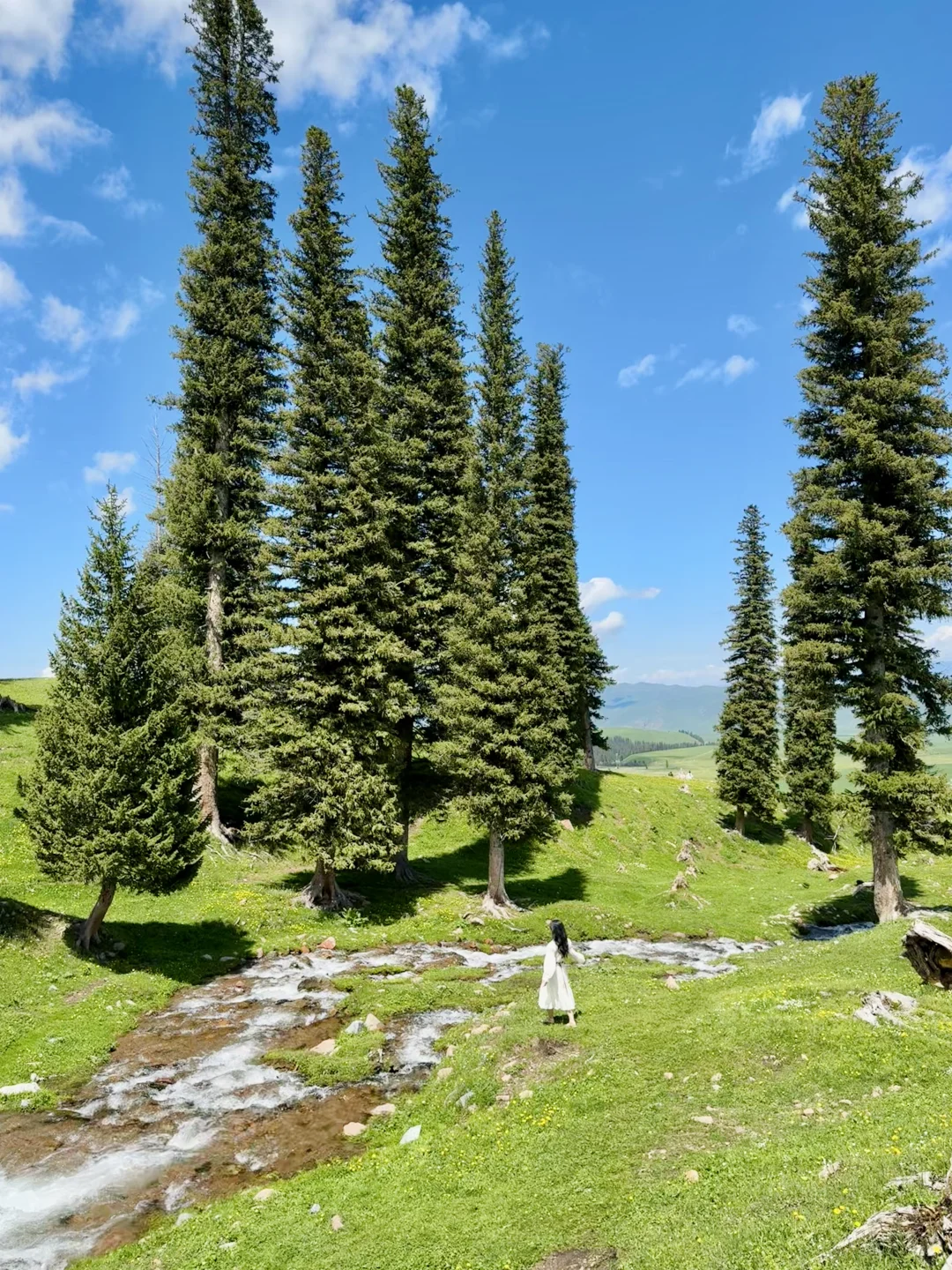 🌲从进去那拉提的路上就一直在惊叹,怎么能这么美!这个季节的那拉提,雪山还有非常多积雪,草原已经绿意盎然,潺潺的小溪河流,在这里可以领略到所谓五彩斑斓的绿。