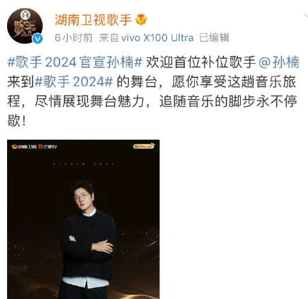 《歌手》最新一期的补位歌手名单确定,目前节目组已经官宣了孙楠要上~