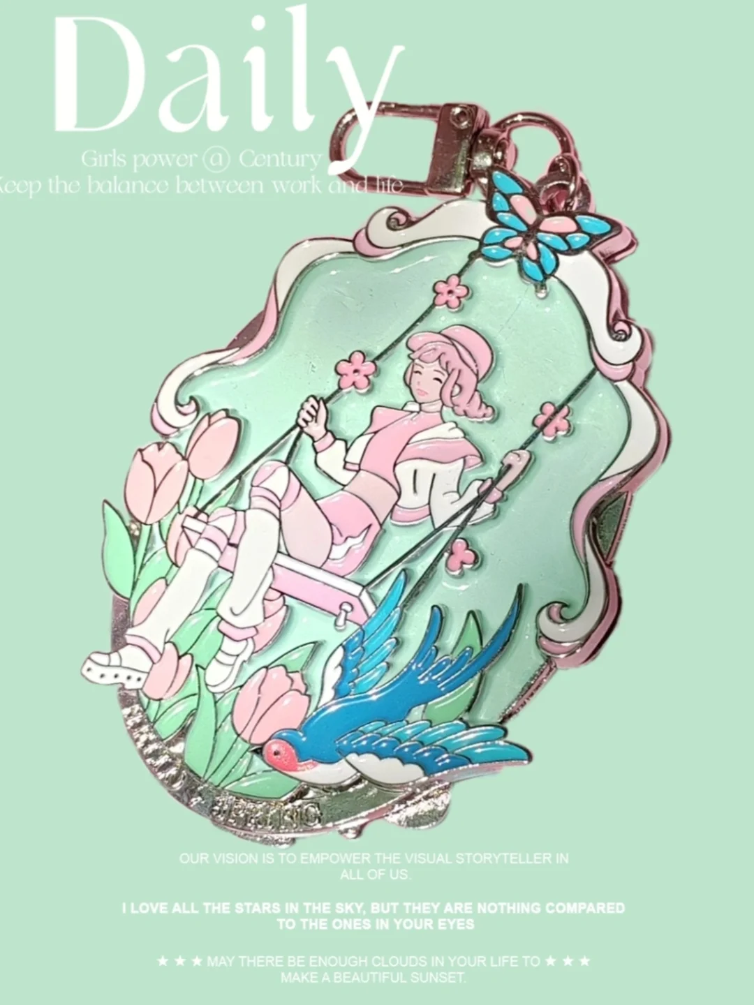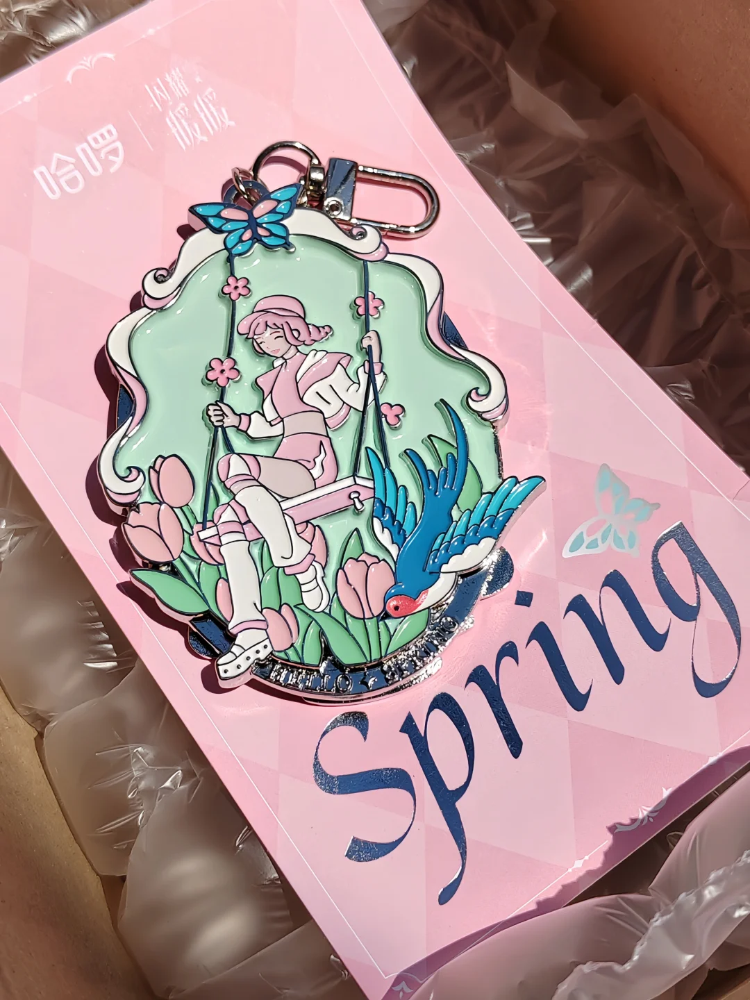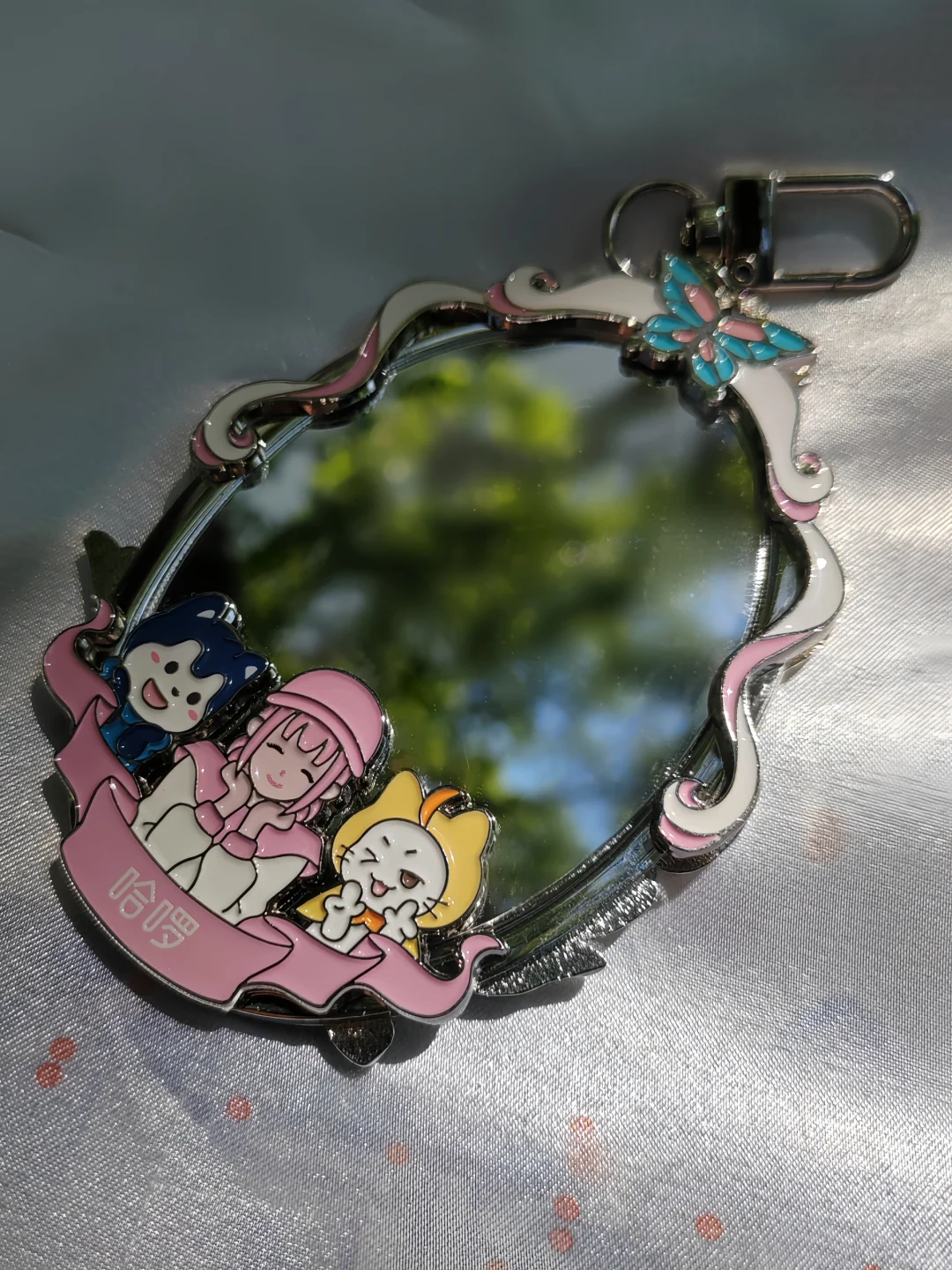 哈啰单车联动的实体勋章已Get!哈啰官博会不会拍照!我真的生气了!实物明明绝美! 在阳光下特别好看,线条清晰,虽然和APP里的有所差别,没关系我会溺爱,夏天晒黑点很正常() 背面是个小镜子,有一定厚度和份量,配色主要是薄荷绿+暖暖粉,清新的夏日气息 镜子这面非常适合带出去野餐摆拍,就是容易沾上灰尘,要多擦擦,可以挂在包上,但我选择让它当个华丽的摆件哈哈哈