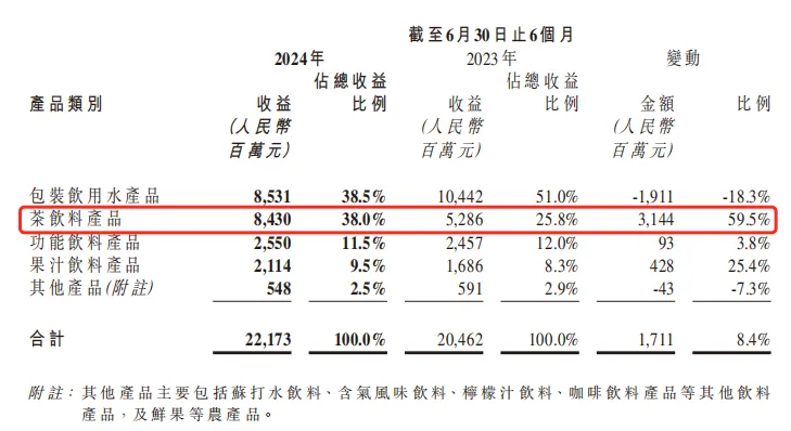 财报显示,今年上半年,农夫山泉茶饮料产品实现营收84.3亿,同比增长59.5%,延续了2021年以来增速50%以上的高增长态势,其中2023年的增速更是逼近90%。