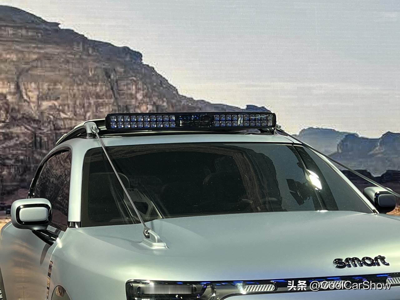 大湾区车展上smart展台带来全新smart精灵5概念车,新车将定位为纯电中型SUV,概念车配备了更有一系列“旅行家套装”专属户外配件加持,包括AT全地形轮胎、隐藏式绞盘和车顶户外射灯等,野性十足。smart精灵5概念车还搭载了行业首创车规级全彩激光投影仪,以及行业首创原车全场景便携HiFi音箱,共同组成沉浸感十足的“smart移动影院”,让密友在户外也可以享受巨幕影院和环绕式KTV等诸多新科技。驱动部分将配备双电机智能四驱,并带有全地形驾驶模式(Off-road、沙地、雪地、泥地、岩石)。同时标配800V+4C快充技术,15分钟可增加500公里续航,最大续航里程超过700公里。量产版车型预计会在今年广州车展上亮相。