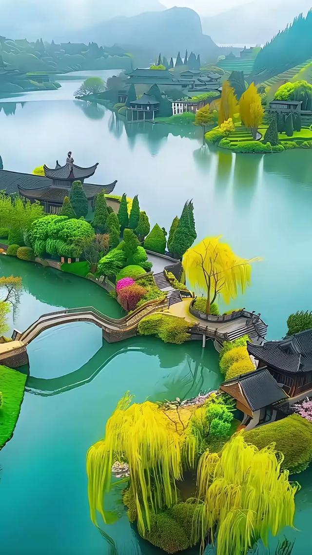 溪边的垂柳摇曳万千, 像是春天婀娜的舞辫。 在水面画出心动的漪涟, 向着远方传递春的信件。