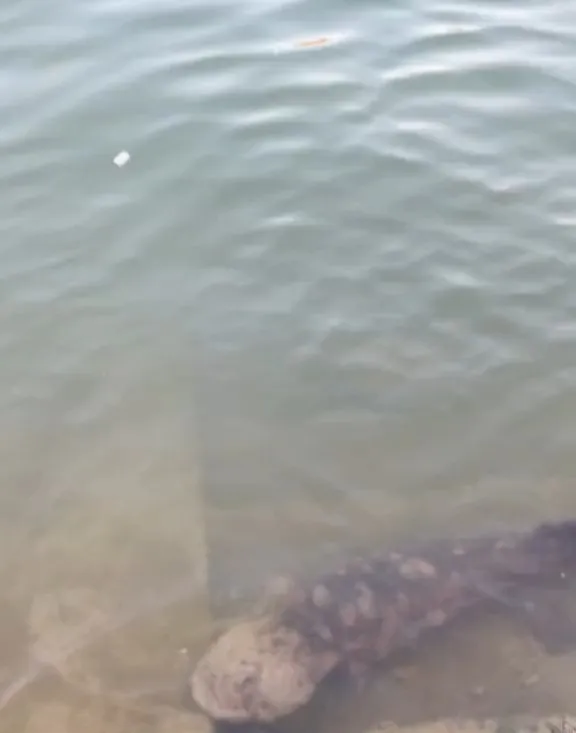 这就是一只国家保护动物,大鲵【娃娃鱼】,听到这里,钓友害怕了,这可怎么办啊!害怕的钓友,不知所措!后来朋友表示,放生呀!鱼的状态又没有问题,也没有受到伤害,放掉就好了!