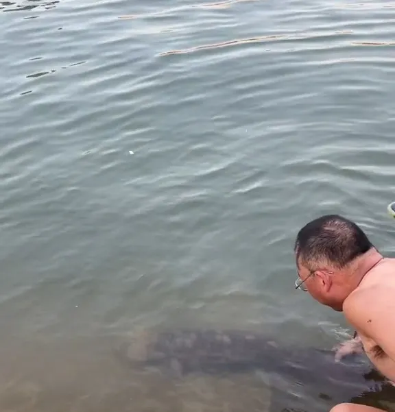 很快,大家找了个位置好的地方,把鱼放入到了水中!看似一切顺利,结果出现了意外!按理说,鱼到水里面就走了,结果呢!这鱼竟然没有走,还想往岸上来,这把人整懵了!