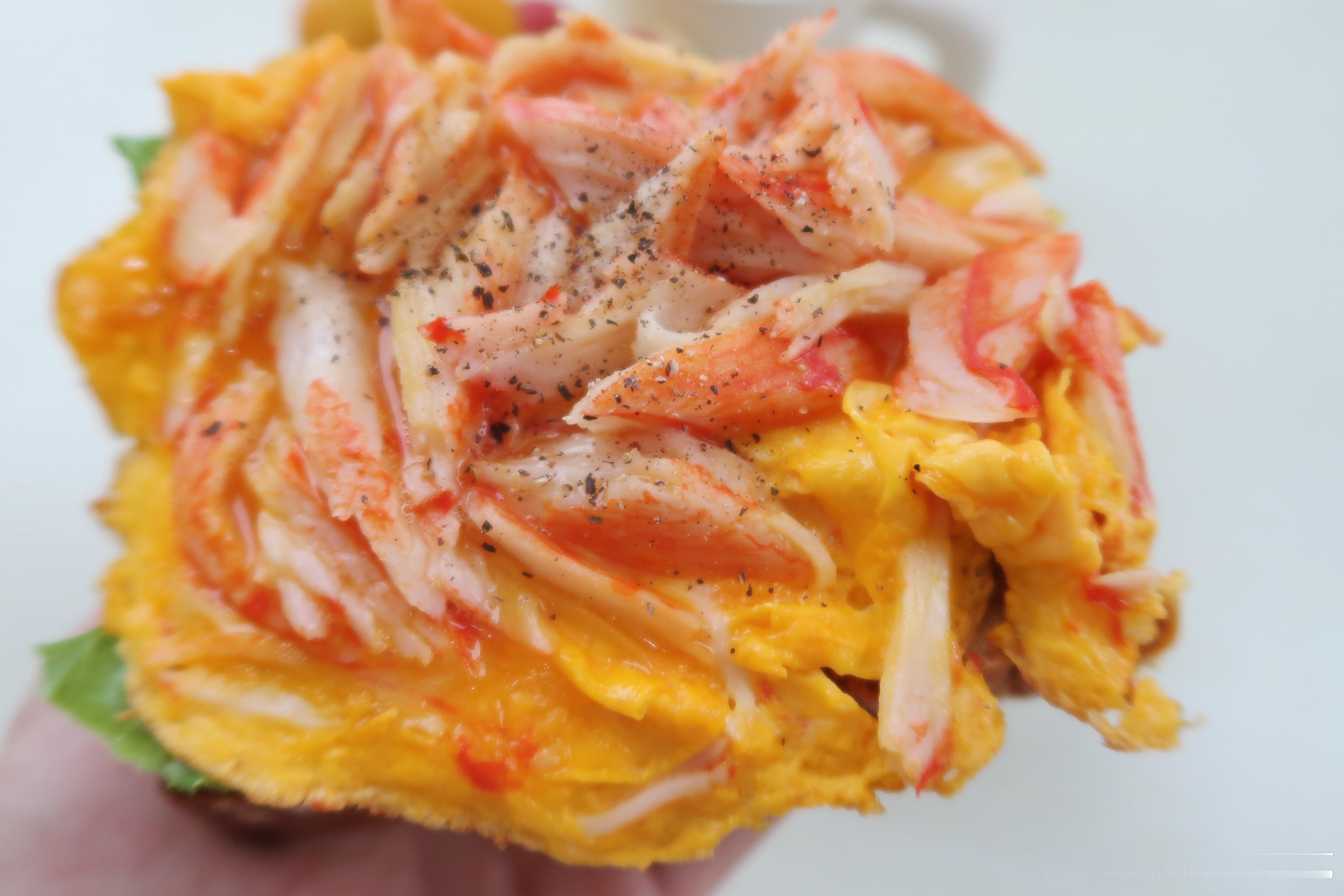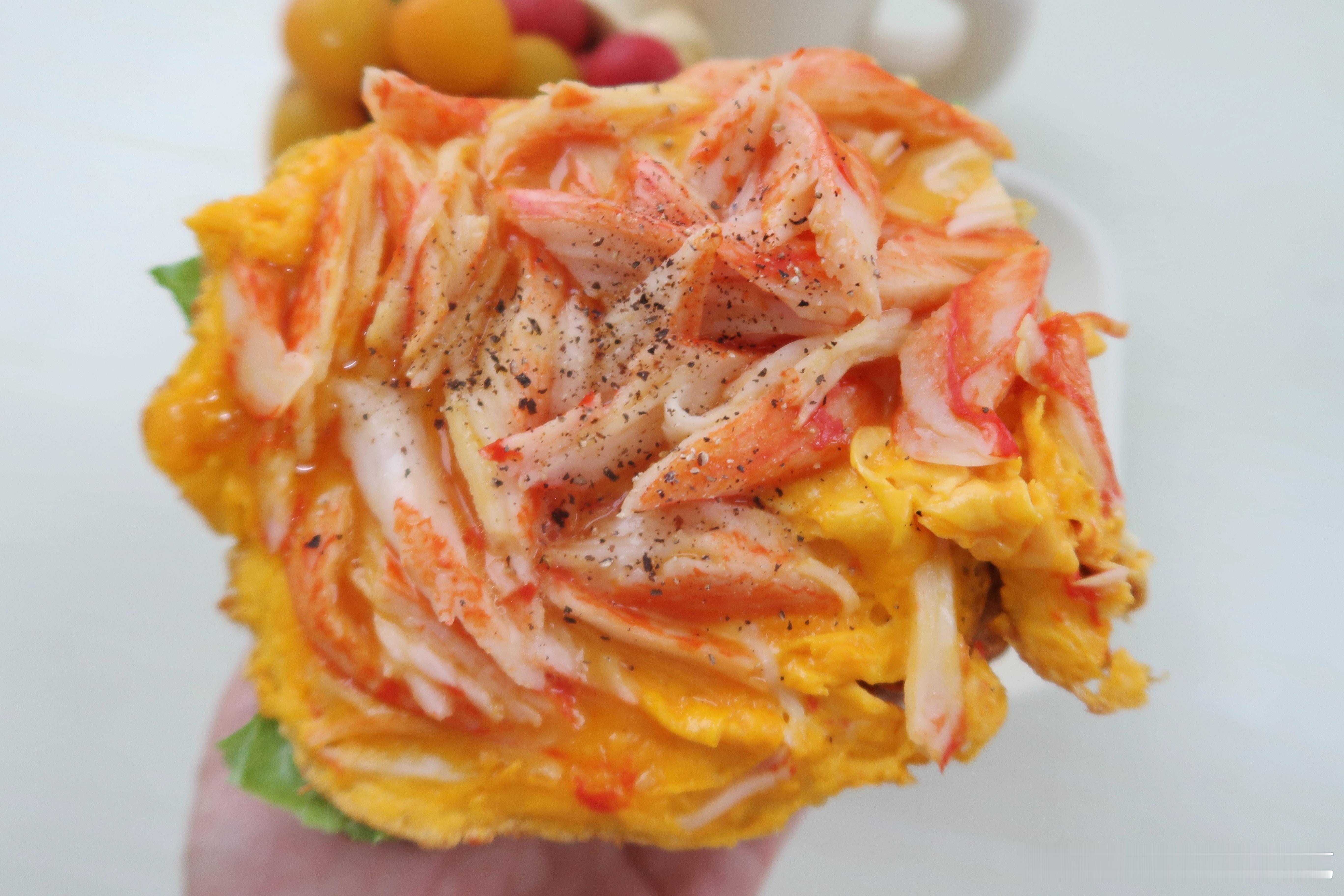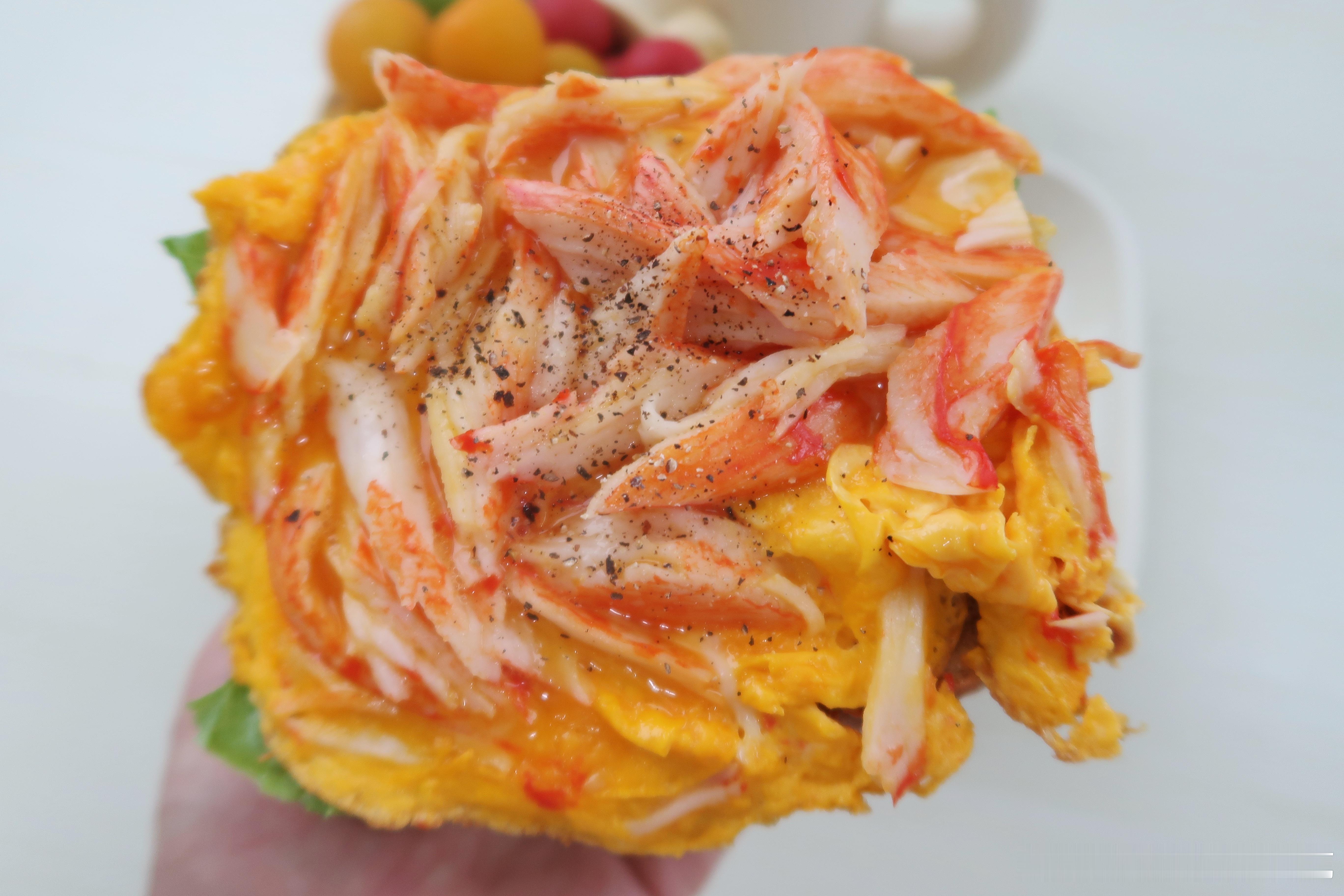 今天吃蟹柳滑蛋吐司,鲜香嫩滑太好吃啦.蟹柳滑蛋做法写一下,蟹柳撕成丝加入鸡蛋和牛奶搅散,锅里放油,倒入蛋液,用铲子将蛋液往锅中间推,煎至蛋液微微凝固,撒上黑胡椒粉即可,超级嫩.