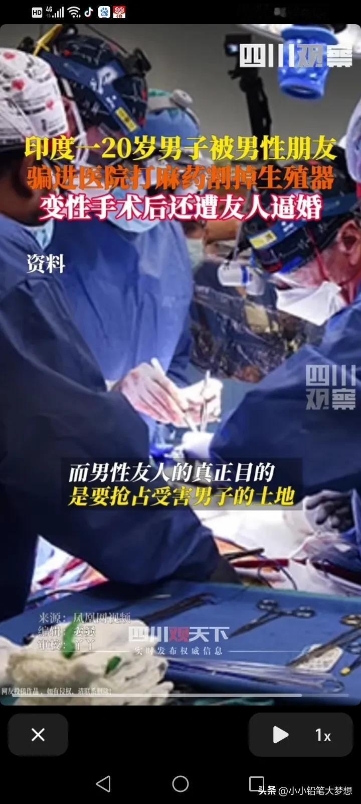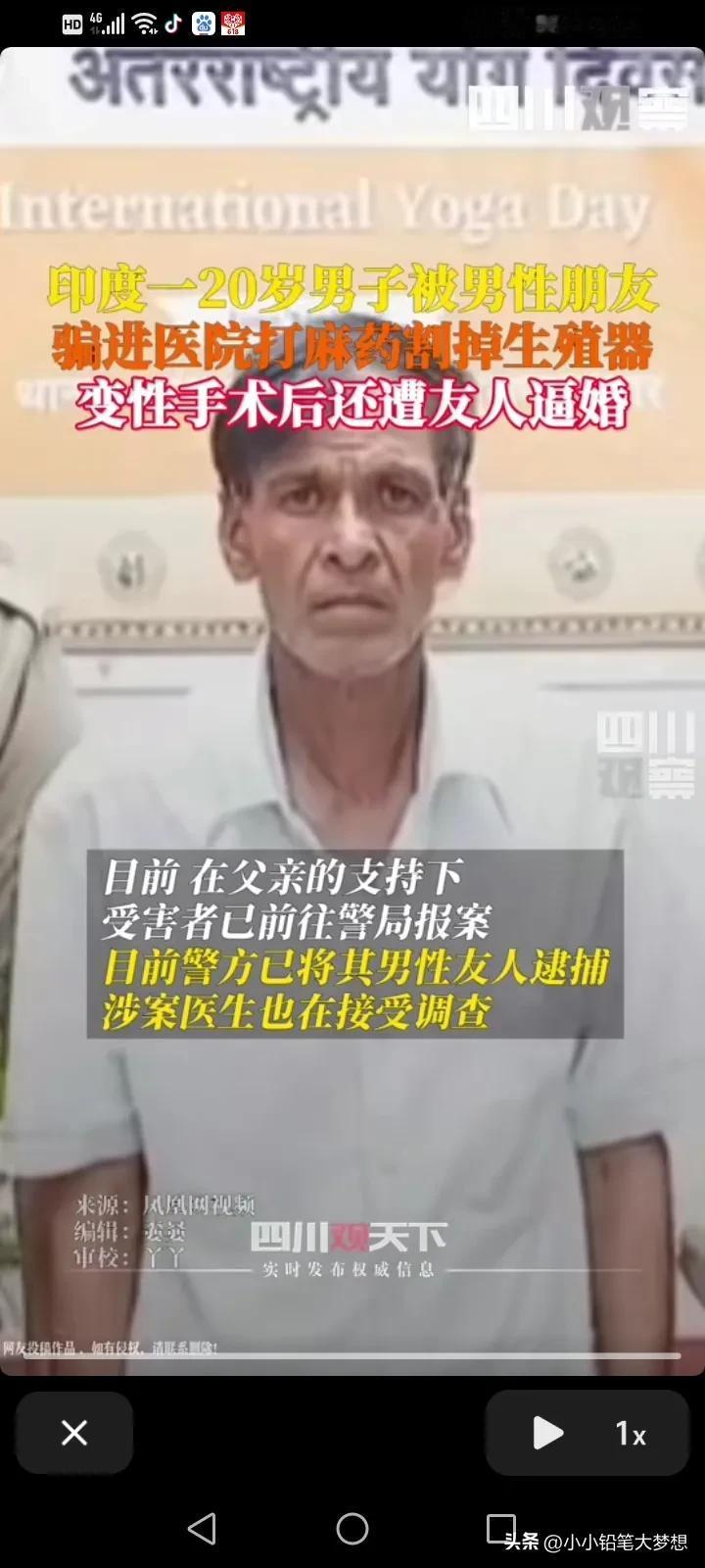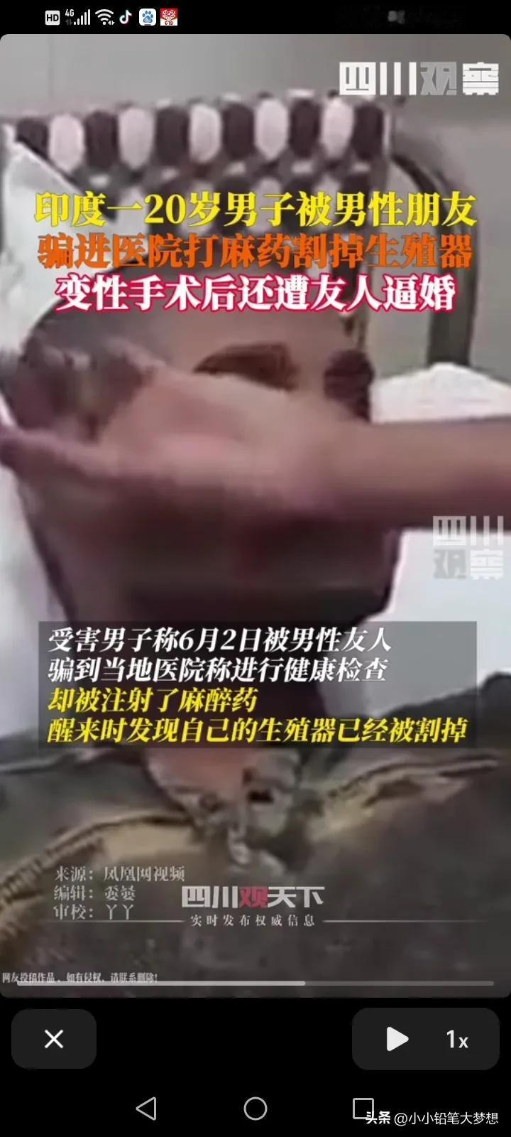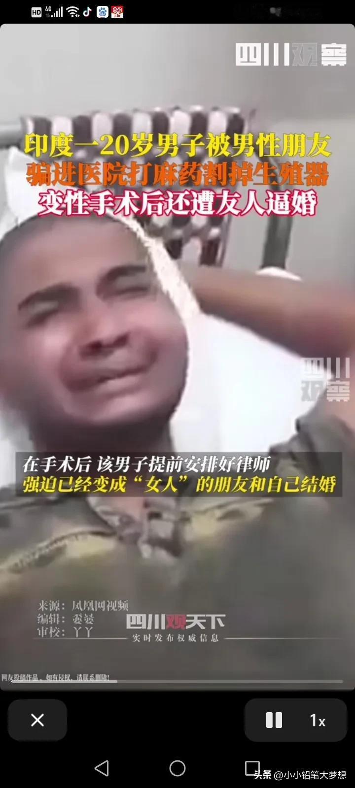 这种事情真诛心!印度这个国家一直在刷新我的三观,就差见鬼了!6月23号,凤凰网视频报道印度一名22岁的男子被一名男性朋友骗进了医院,说是做身体检查,实际上是给他打了麻醉割掉了重要的器官,由男人变成了女人! 这已经够惨了,没想到他那位朋友后面的招数还更损,这位男性朋友提前安排了律师,威胁被迫已经变性的“女人”跟他结婚! 男子醒来之后发现自己的重要器官没了,非常崩溃,没想到他的这位男性朋友对他做出这样的事情的目的竟然是为了侵占他家的土地! 被变性的这位男子在父亲的劝导下,鼓起了勇气向当地警方报警,目前,他的这位男性朋友已经被警方拘捕,而给他做变性手术的医生也接受调查。 印度的事件都很炸裂,真的很可怕,好好的男人被人骗进了医院变成了女人,而且还被逼婚,接二连三的精神压迫,正常人肯定会疯掉,真的好惨,原来印度看男的变成女人也会被人算计吃绝户!
