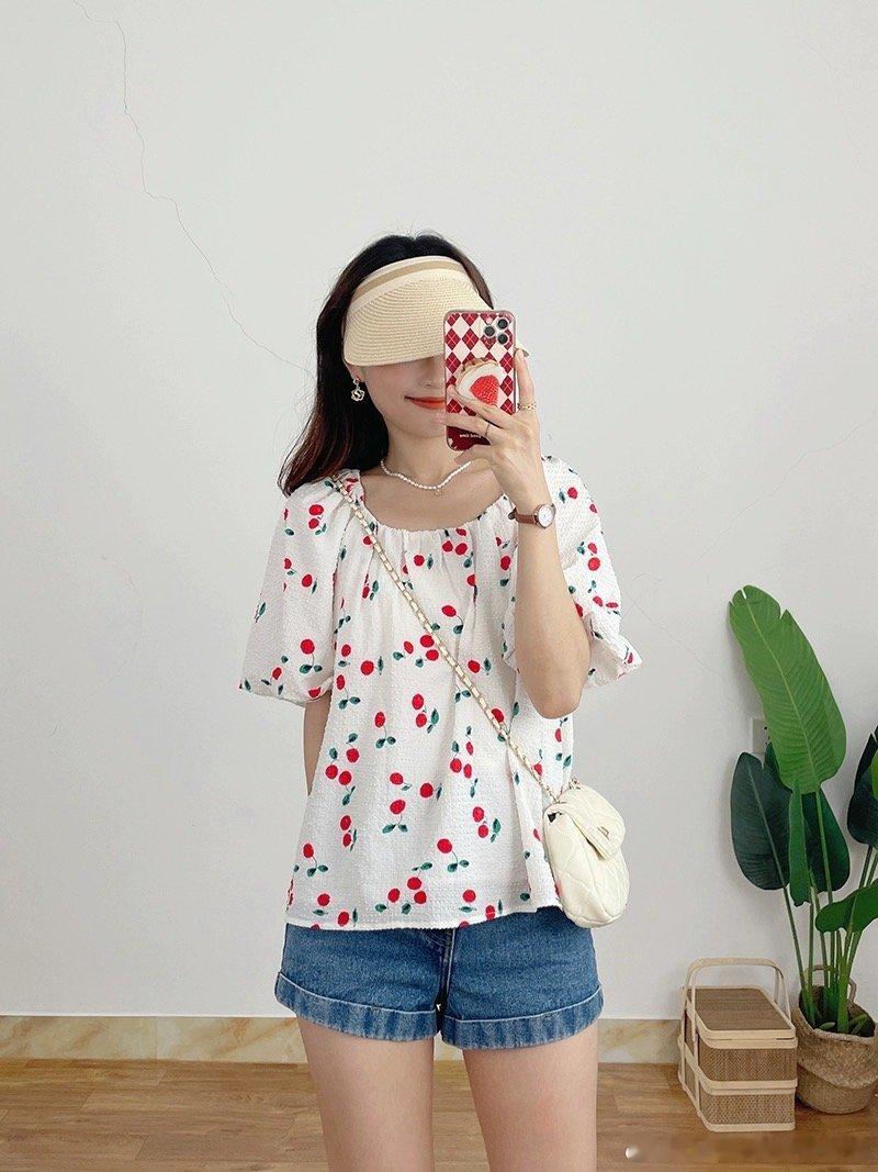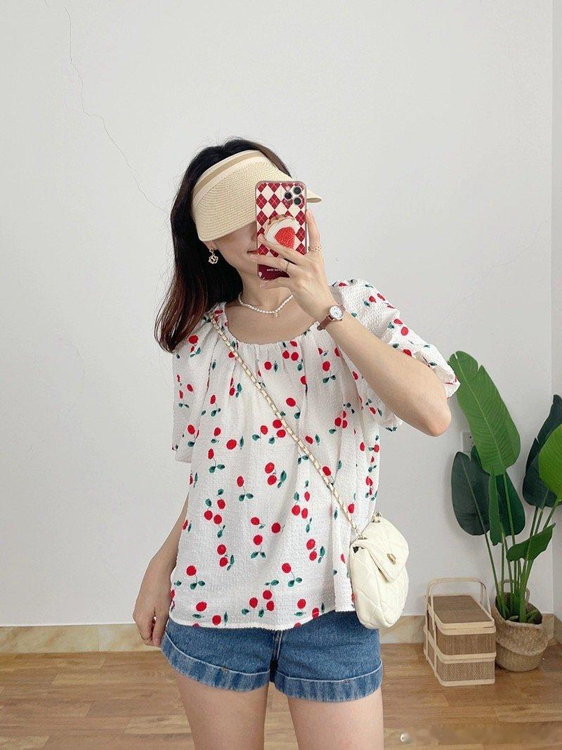 樱桃图案,点染了宽松的衣衫,如同夏日果园中最诱人的果实。这件樱桃宽松上衣,是慵懒与甜美的完美融合。宽松的版型包容着每一寸肌肤,让您在每一个动作中都散发出随性与自在。樱桃图案俏皮可爱,仿佛在诉说着青春的故事,为您增添一份少女的灵动与活泼。