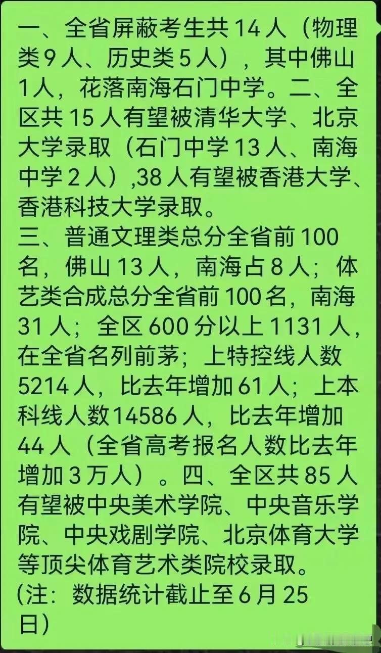 南海说的是前一百,顺德说的是清北生,都还没录取,有点偷换概念了,石门中学近年稍微领先一点