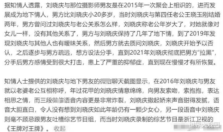 这位摄影师还透露,他们的关系维持了几年,最终因为刘晓庆“跟别的男人暧昧”,两人分手。