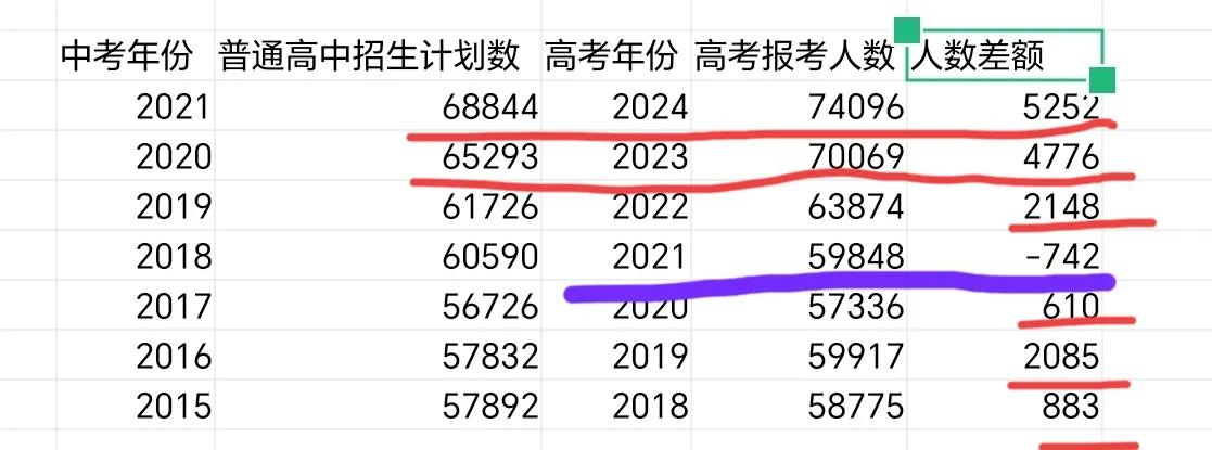 海南“打击高考移民”任重而道远!2018-2024年7年间,仅2021年高考人数与三年前即2018年中考普高招生人数“倒挂”(即高考人数少于三年前普高招生人数)。剩下的6年,高考人数均多于三年前普高招生人数,尤其是2023和2024年高考人数分别比三年前(2020和2021年中考)普高招生人数多出4776人和5252人之多,分别占当年高考人数的6.8%和7.1%。 #高考# #高考移民#