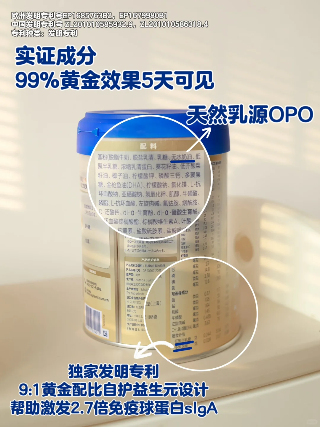 它里面含有爱他美独家发明专利9:1黄金配比自护益生元设计,是全球研究和文献支持z多的益生元组合,添加量高达行业的2倍,它可以帮助宝宝肚肚有益菌增殖60%+,还可以激发2.7倍免疫球蛋白sIgA,帮助宝宝提升卓越自护力~