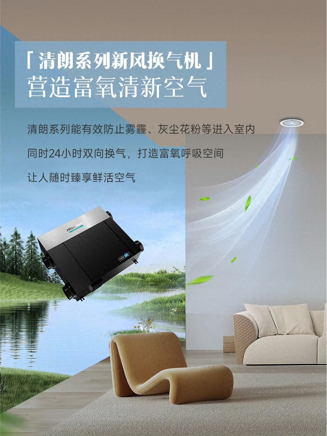 海信清朗系列新风换气机是科技与健康生活理念相结合的产物,致力于为用户提供高品质的空气环境。