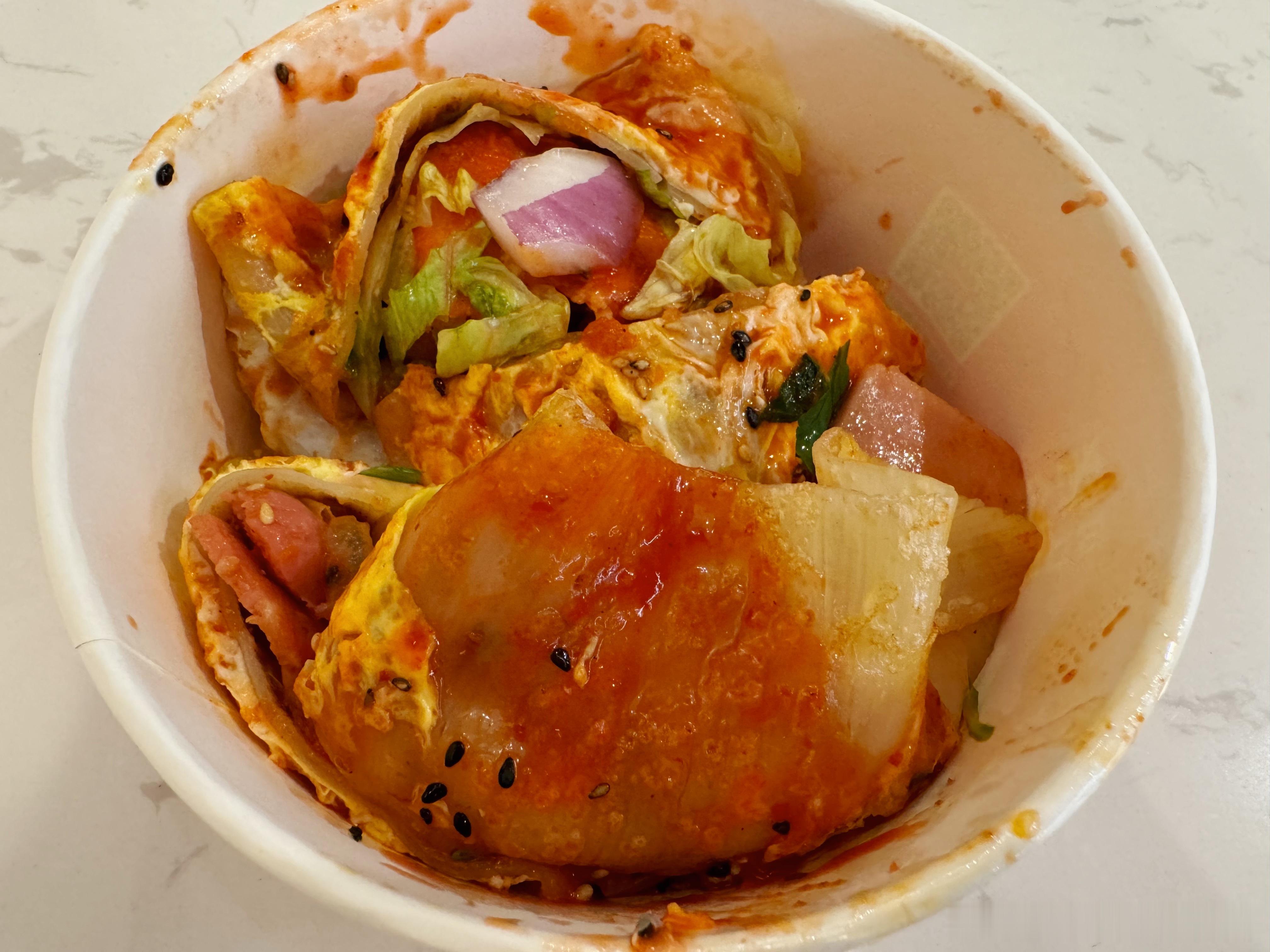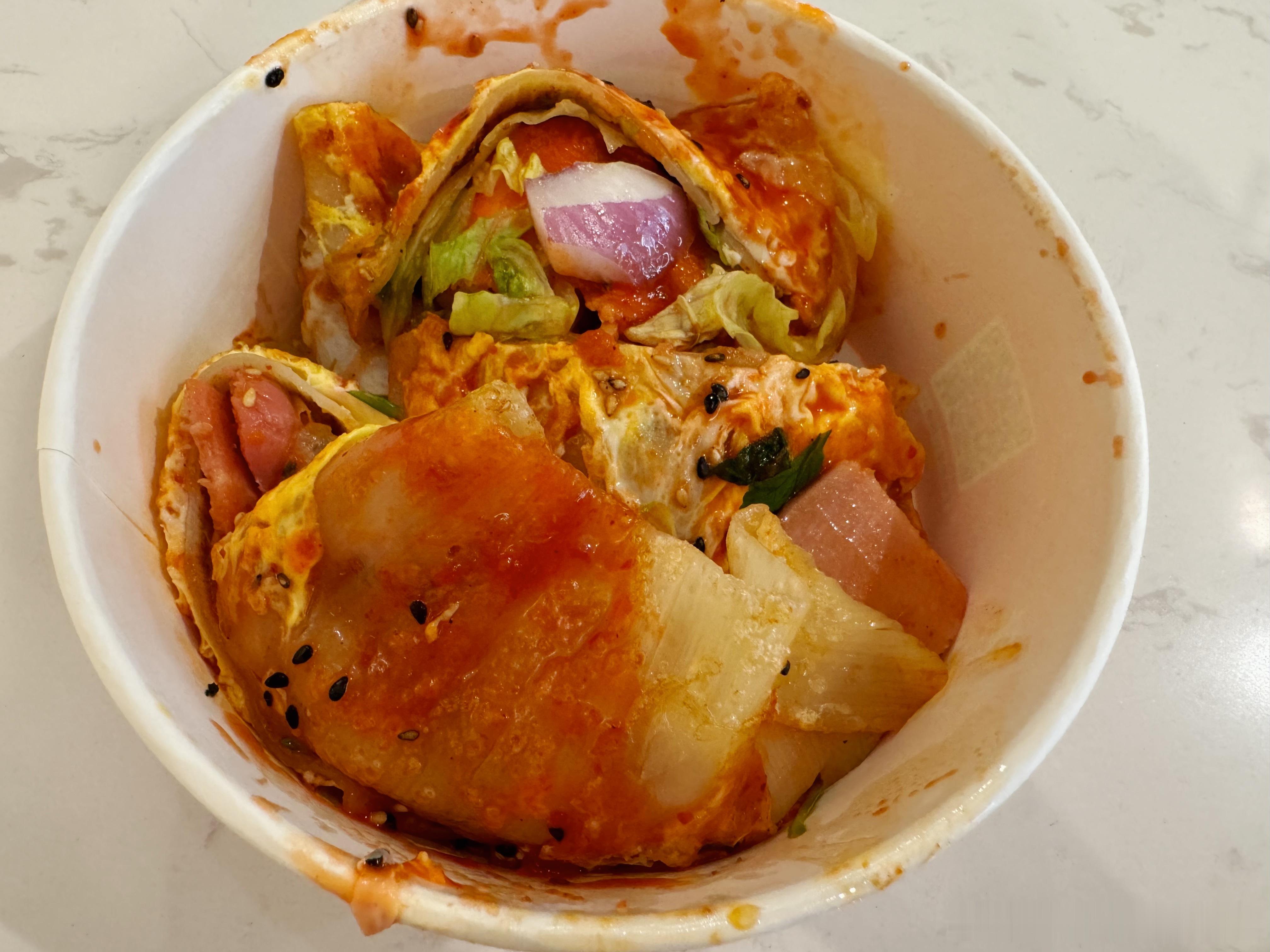 早.今天的早餐是卷心菜鸡蛋贝果🥯烤香肠🥩水蜜桃🍑牛奶🥛今天吃卷心菜鸡蛋贝