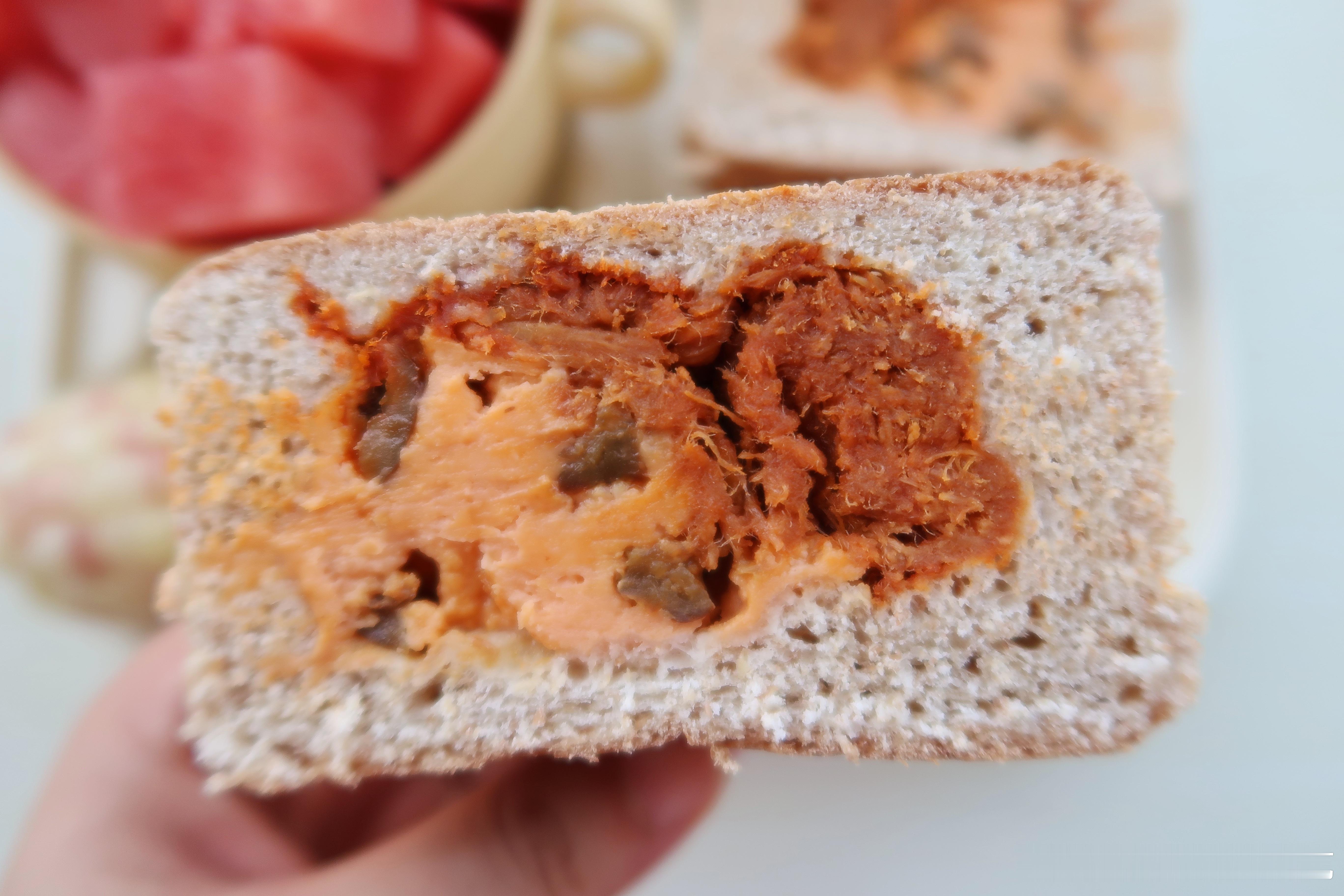 今天吃面包,料很足的一款面包我,馅料有辣肉松、乌梅干和奶酪,整体是咸辣的口感,很扎实饱腹感很强.蒸了糯玉米,有新鲜玉米吃美滋滋的.#好好吃饭##元气早餐#