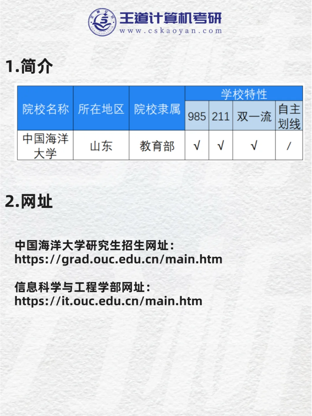 24计算机考研考情分析持续更新ing~ 这所山东省双一流院校,专业课只考一门,一起来看看中国海洋大学的考情分析!