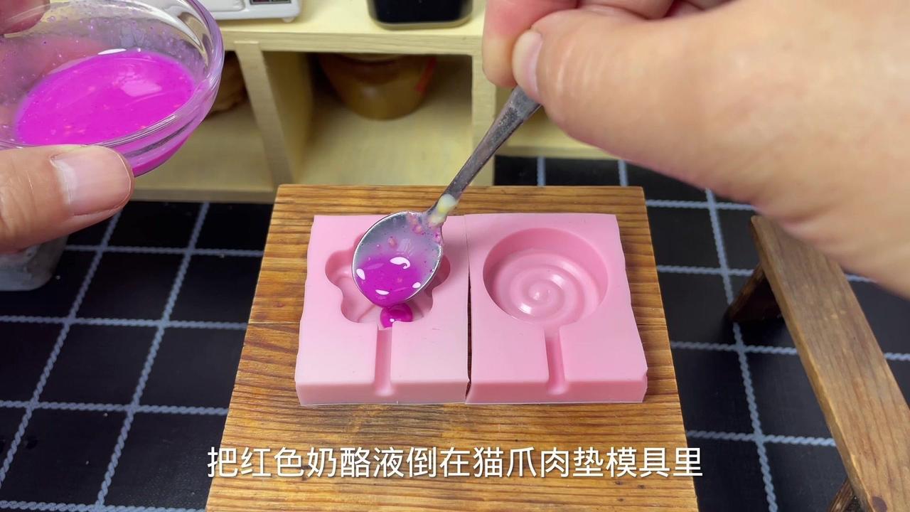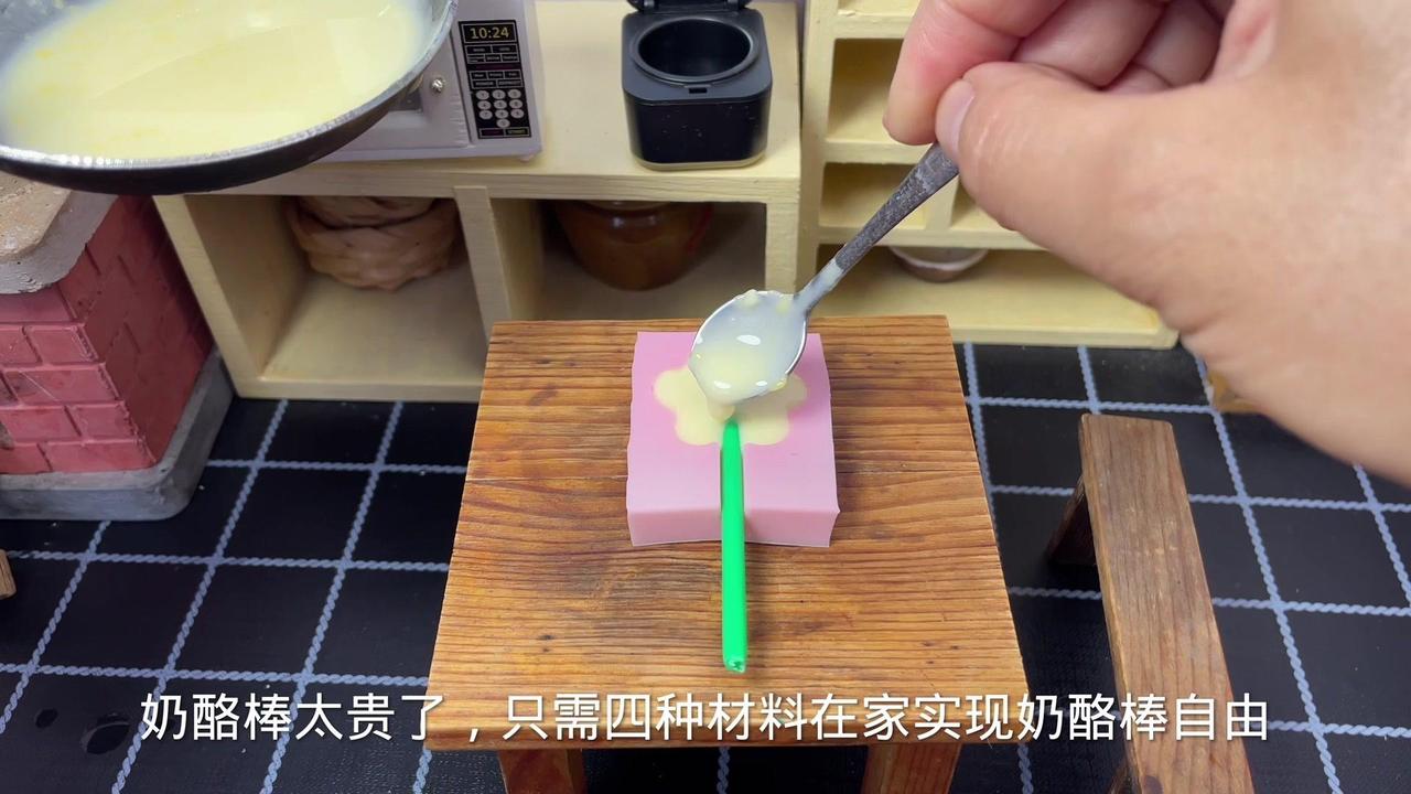 😋奶酪棒在家做,只需4种材料!👩🍳这几天欣欣一直嚷嚷让我给他买奶酪棒,可是奶酪棒太贵了,我还是用牛奶给他做吧。 🍳奶酪棒做法非常简单,有角就会。 1️⃣先把吉利丁片放入冷水中泡软。 2️⃣锅里倒入公牛奶,倒入688粒白糖,两片芝士片,开小火搅到芝士片完全溶解就可以关火了。 3️⃣再放入泡软的吉利丁片,搅拌至融化。 4️⃣提前榨好的火龙果汁,倒一点奶酪液,搅拌均匀。 🍳准备两个模具,把红色奶酪液倒在猫爪肉垫模具里,先把它放入冰箱冷藏10分钟。 🍳放一根塑料棒,奶酪液倒进去,放入冰箱冷藏2小时。 🍳这个猫爪肉垫奶酪部分也凝固了,再倒入奶酪液,同样冰箱冷藏两个小时。 🍳时间到给它脱个模,一定要小心翼翼的。 😋脱模成功,那么好看又好吃的奶酪棒就做好了。 👩🍳欣欣尝尝我做的奶酪棒,哇塞这个猫爪奶酪棒真好看,那我赶紧尝一尝。 😋哇塞,丝滑细腻,奶香浓郁,真的太好吃了!