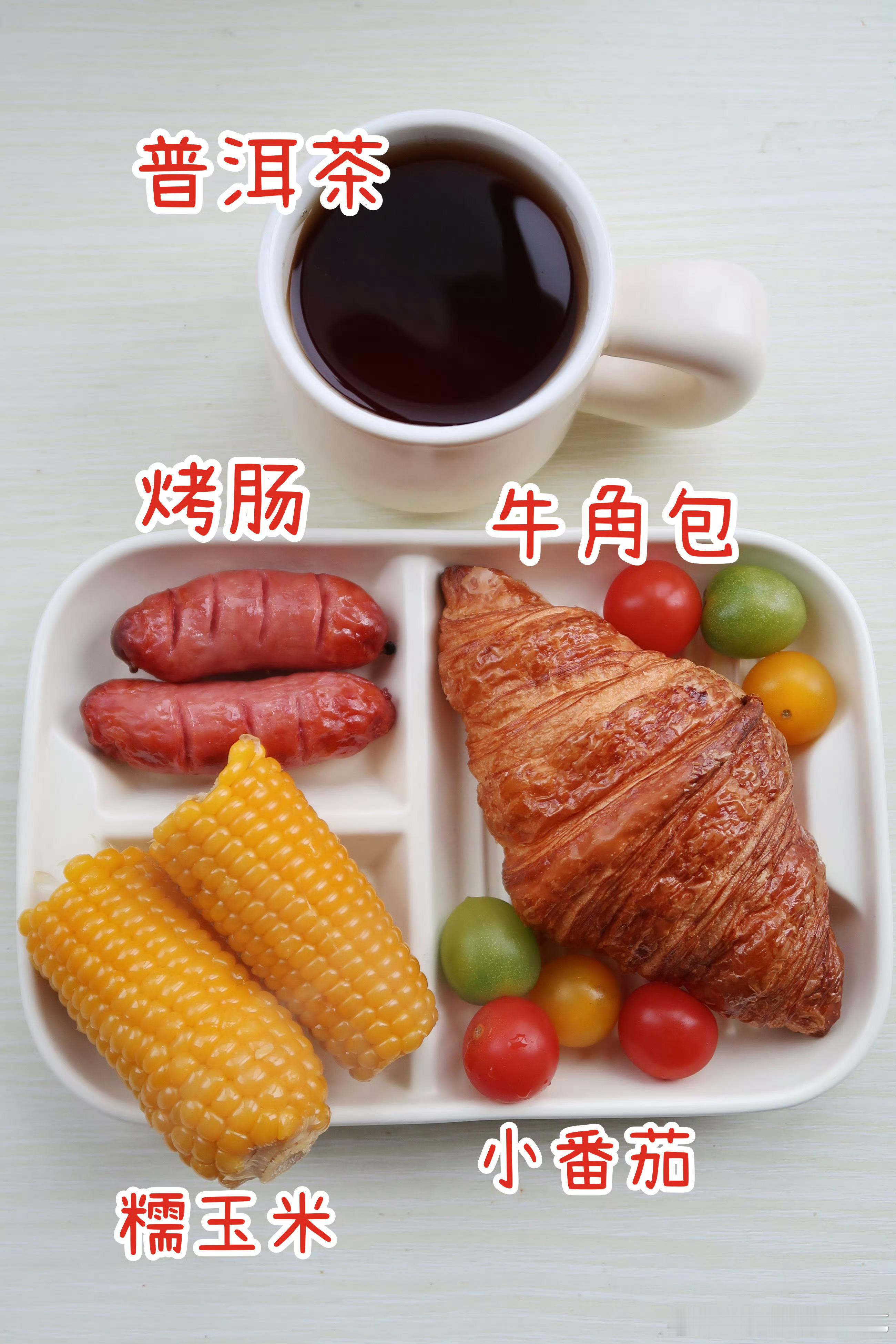 早.今天的早餐是番茄肉松乌梅奶酪面包🥖糯玉米🌽西瓜🍉牛奶🥛今天吃面包,料