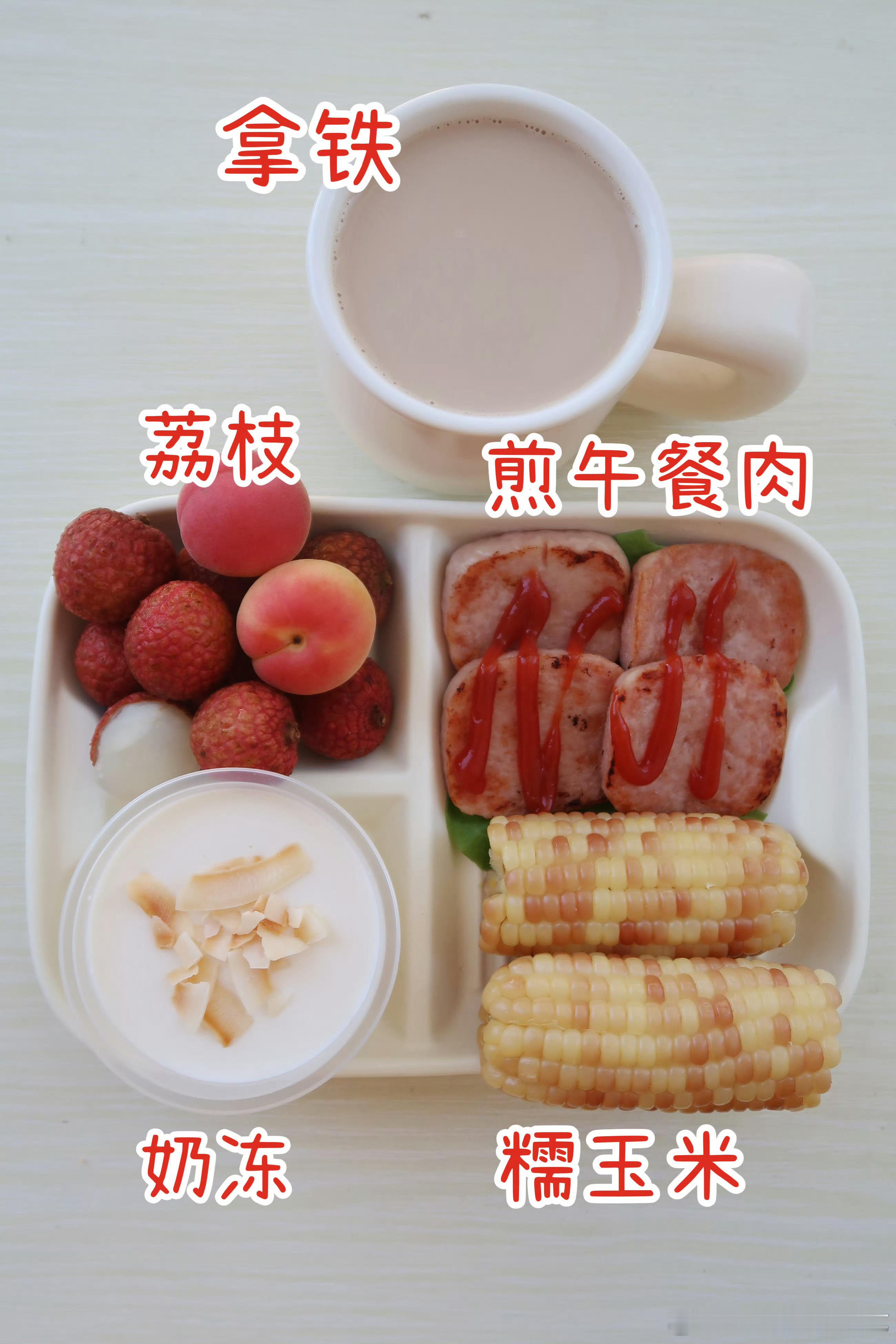 分享早餐.今天单位早餐是一份榴莲斑斓吐司🍞红豆烧仙草🍧玉米🌽拿铁☕️今天吃