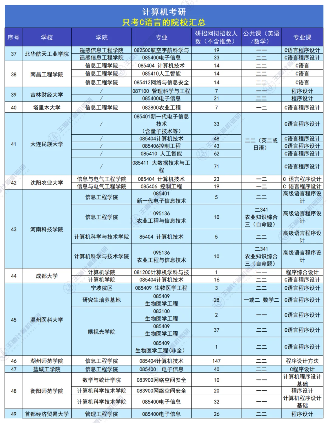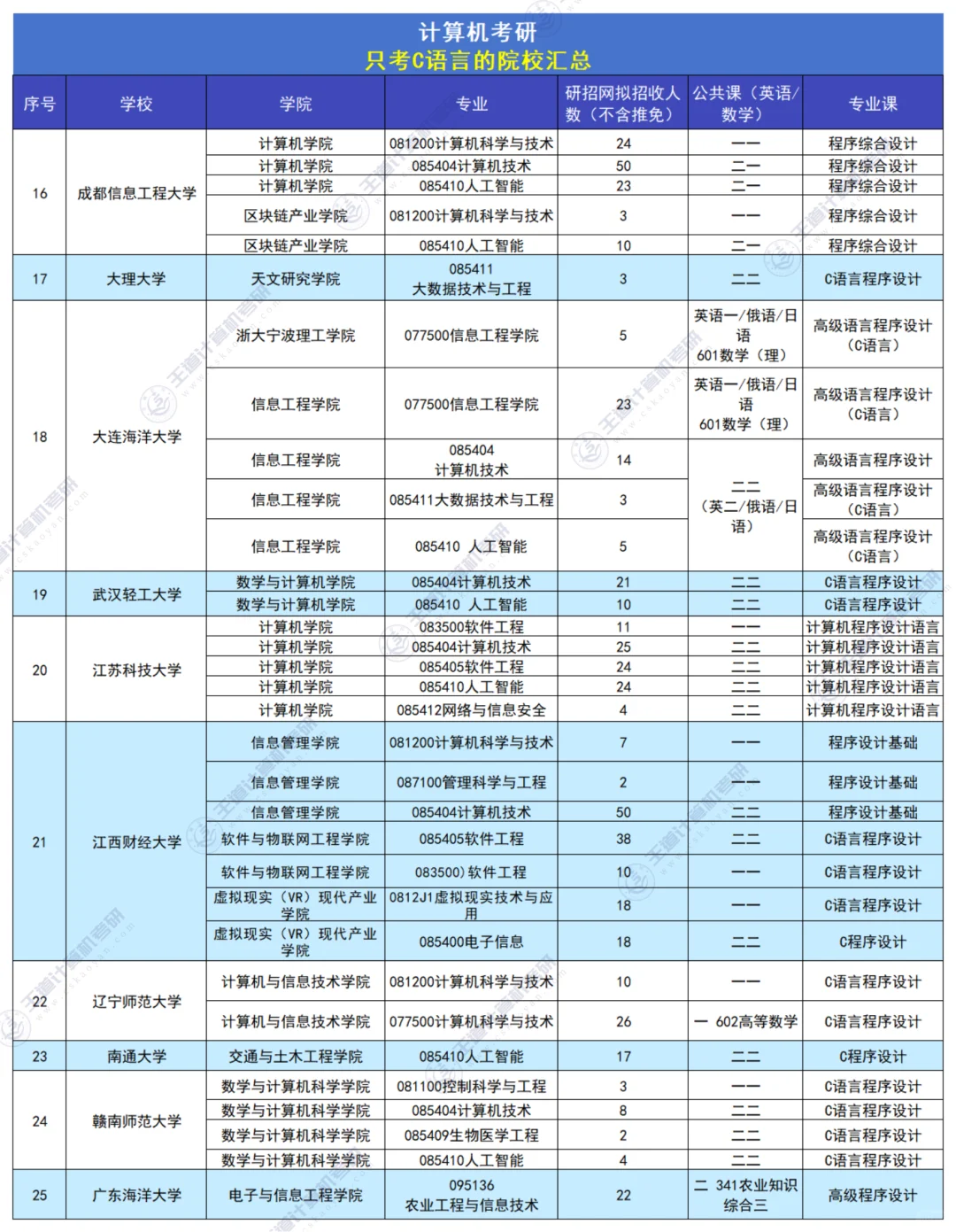 计算机考研|只考c语言的院校汇总