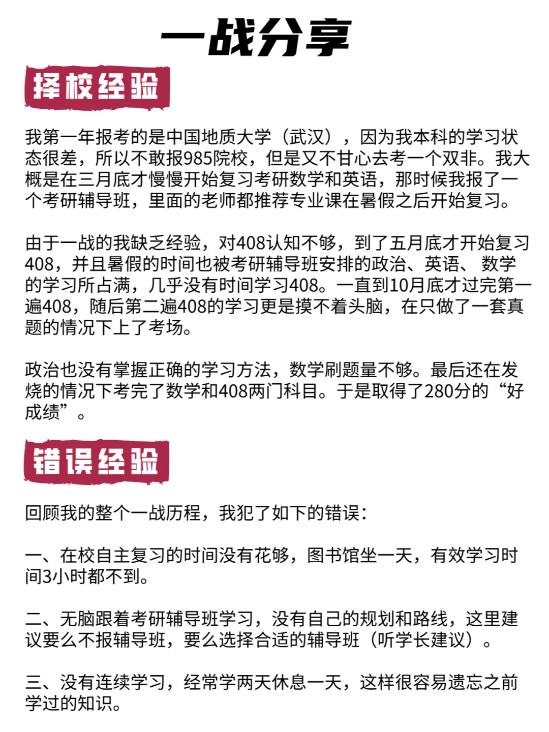 本科江苏科技大学,一战报考中国地质大学(武汉),408计算机综合68,二战报考科软,408计算机综合107! - 初试377,只高复试线1分,复试成功逆袭!一起来看看他是如何备考的,以及一战与二战的心得总结,希望对你们有所帮助喔~