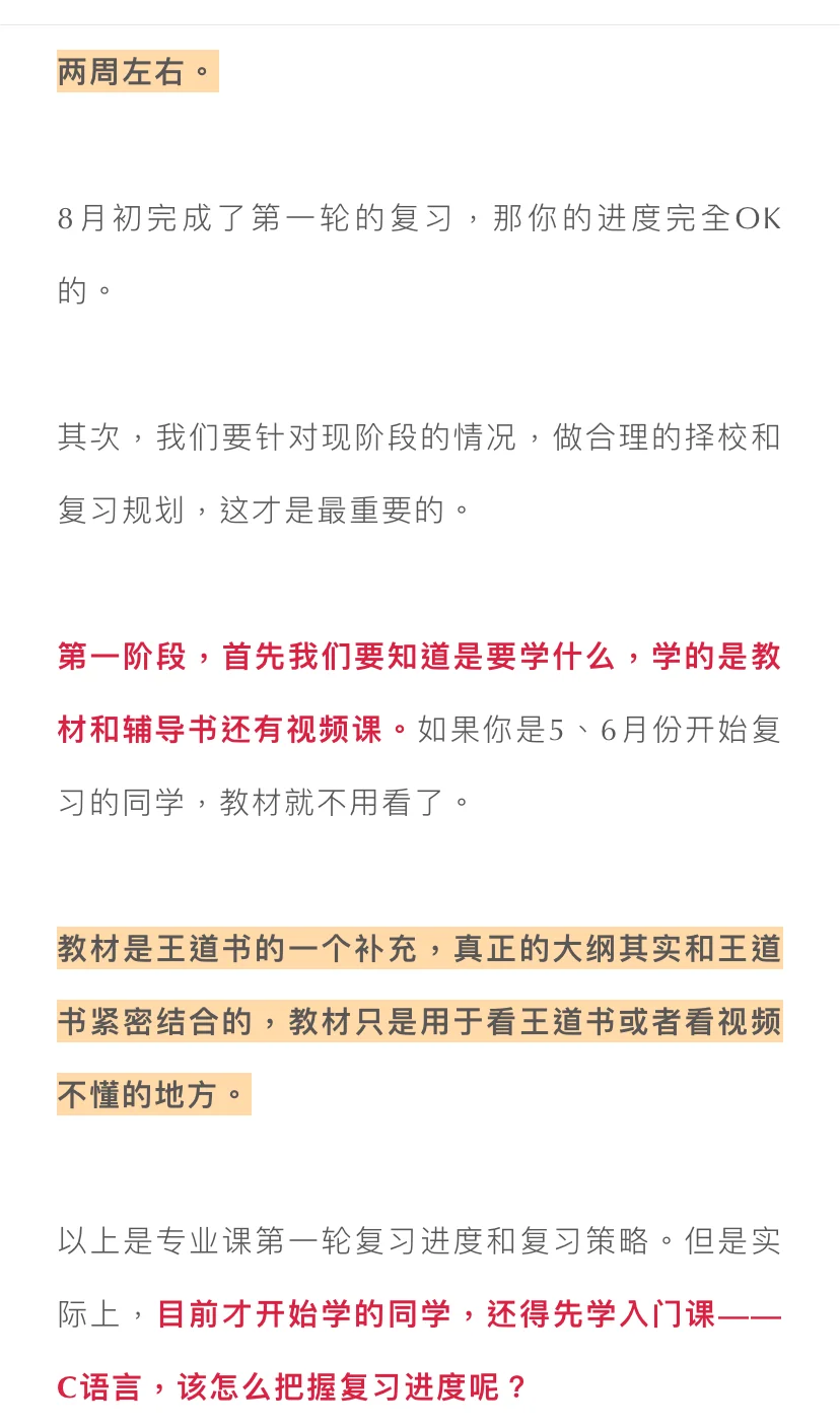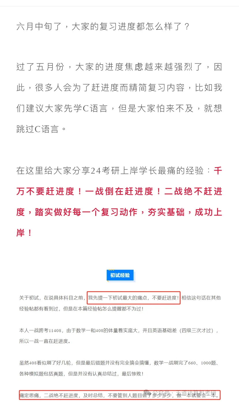 过了5月份,大家的进度焦虑越来越强烈了,很多人会为了赶进度而精简复习内容,怕来不及就想跳过C语言 - 在这里给大家分享24考研上岸学长最痛的经验:千万不要赶进度!一战倒在赶进度!二战绝不赶进度,踏实做好每一个复习动作,夯实基础,成功上岸!