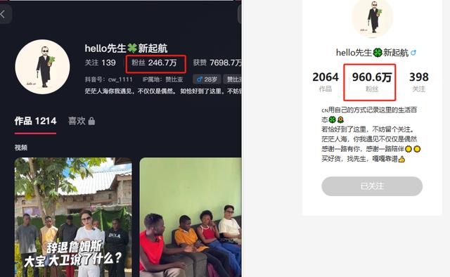 当时自媒体开始兴起,敏锐的他也拿起手机,拍摄了许多有关非洲生活的短视频,充满野性的风土人情,加上程威温暖和真诚的性格让他慢慢走红,9年来全网积累了千万粉丝。
