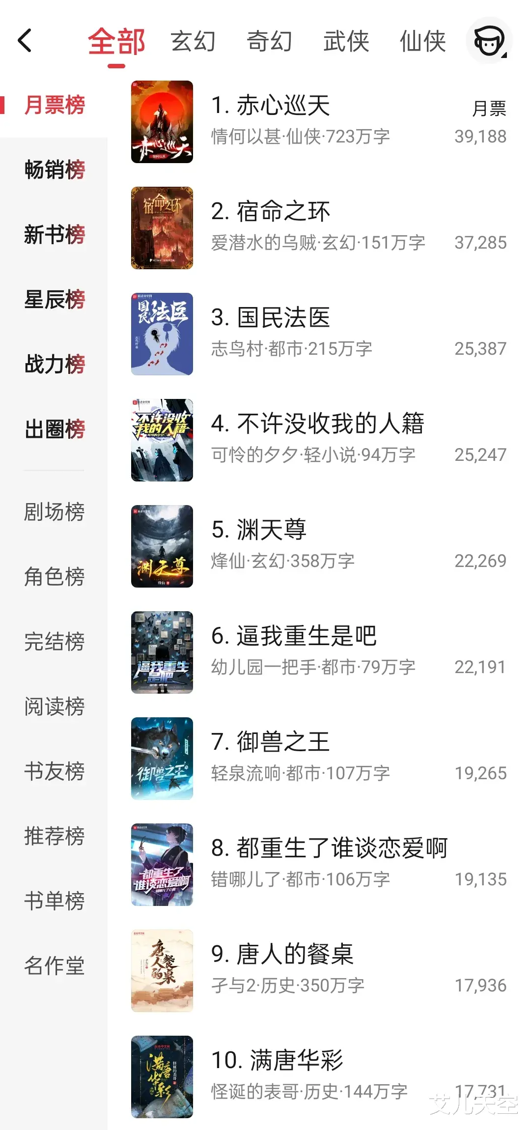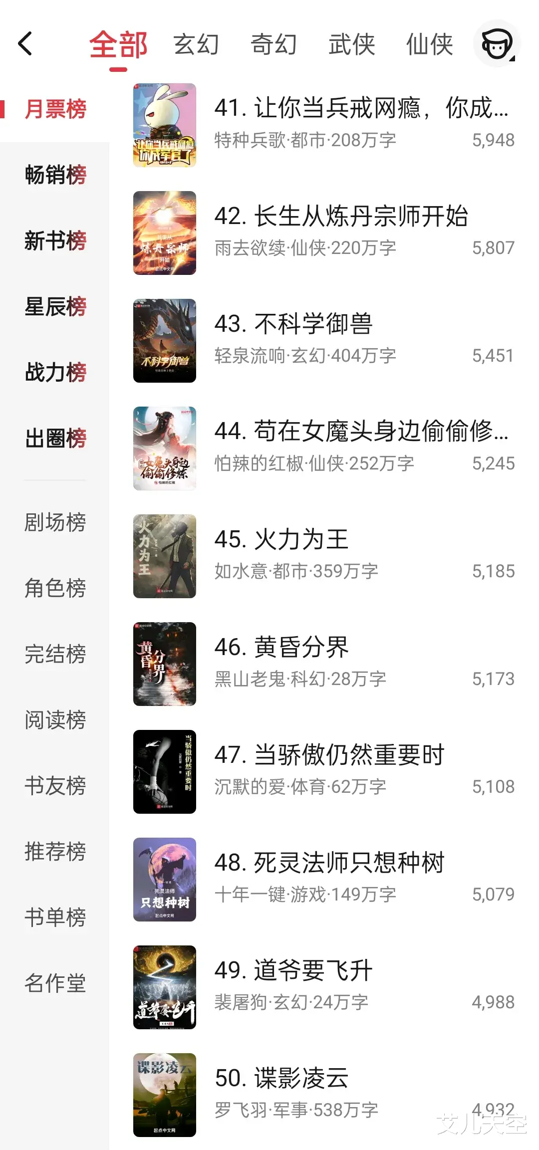 以上就是这周一些作品的月票榜排名情况了,感觉没有多少热情了。那么这期就到这里,接着去看看这周完结的一些小说了。