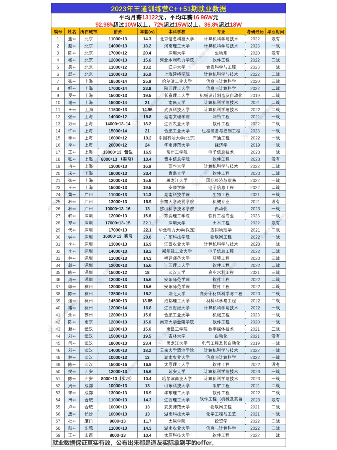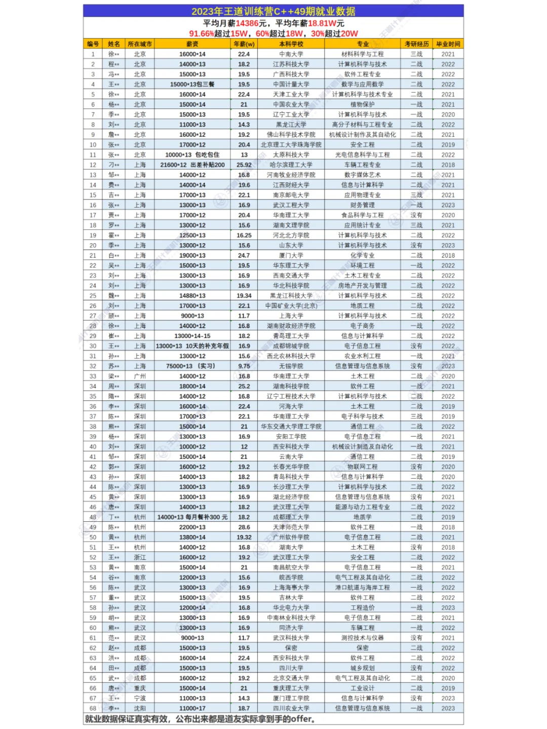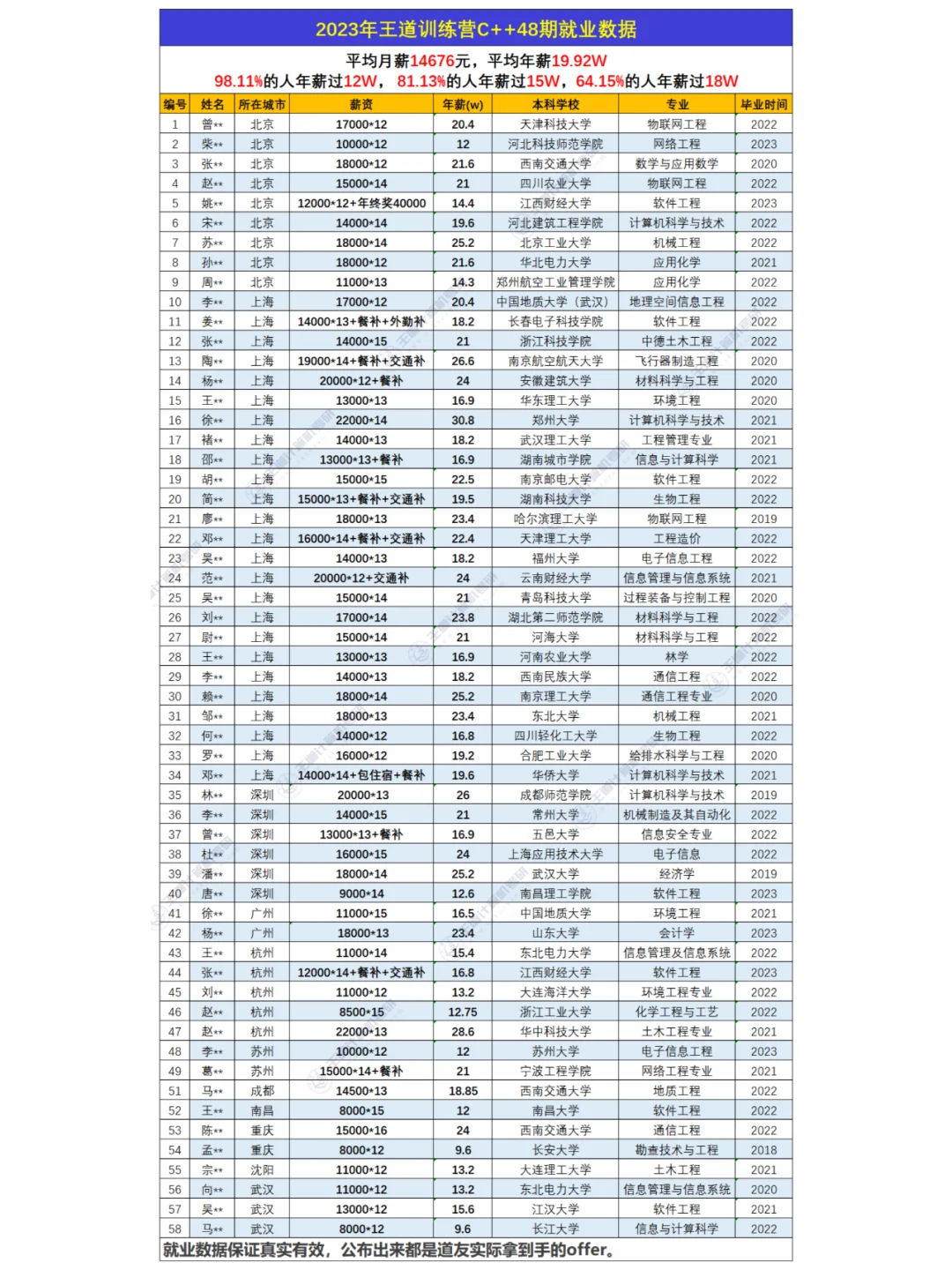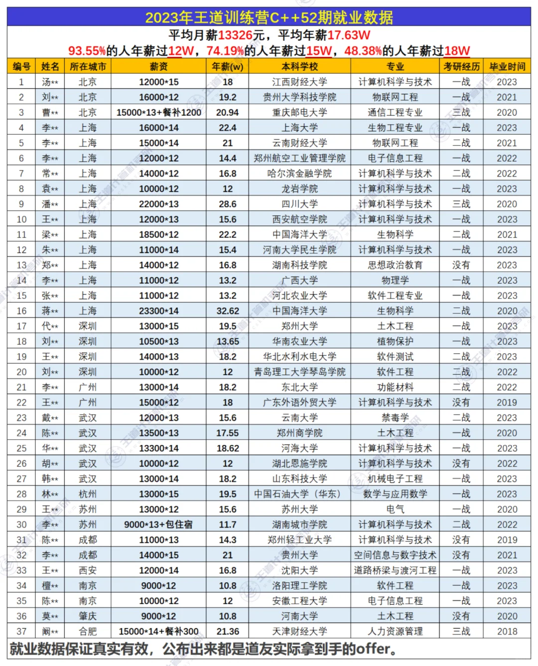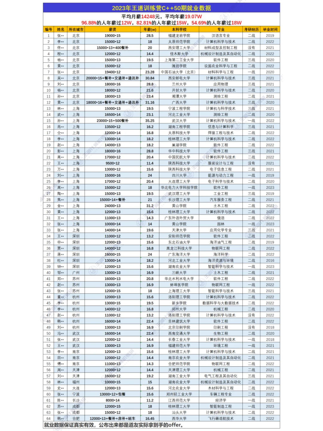 王道C++47期,C++48期,C++49期,C++50期,C++51期,C++52期的就业情况已经更新,一起来看看详细的数据喔!