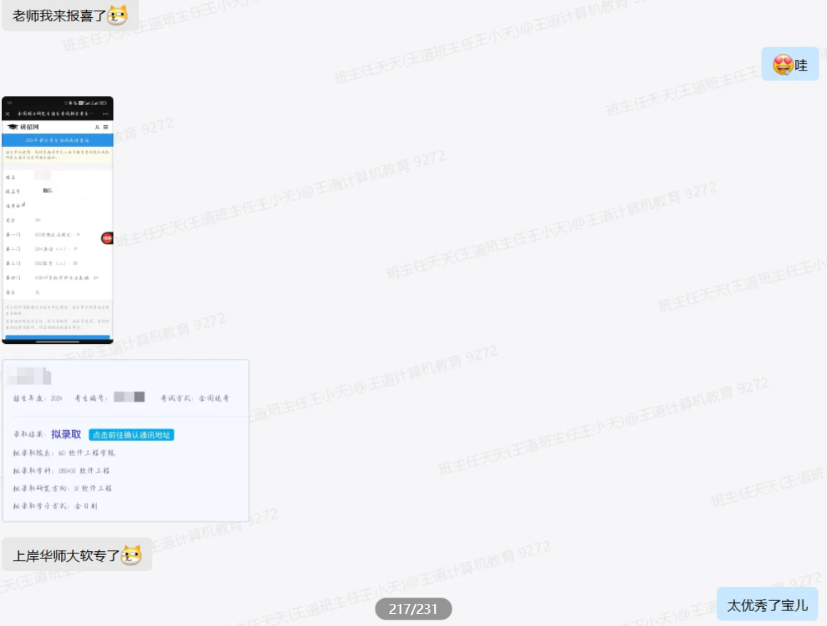 24王道领学班学员,本科湖北工程学院,一战报考华东师范大学软专,已经拟录取了! ”王道答疑群真的有帮助,很多都是答疑群里问到的,少了很多搜集答案的时间“ 恭喜同学,努力终有回报!