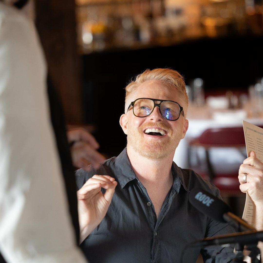 #摩登家庭#的Jesse Tyler Ferguson邀请《美国谍梦》《头号外交官》女主Keri Russell上播客节目《Dinner's on me》,在社媒晒两人合影。
