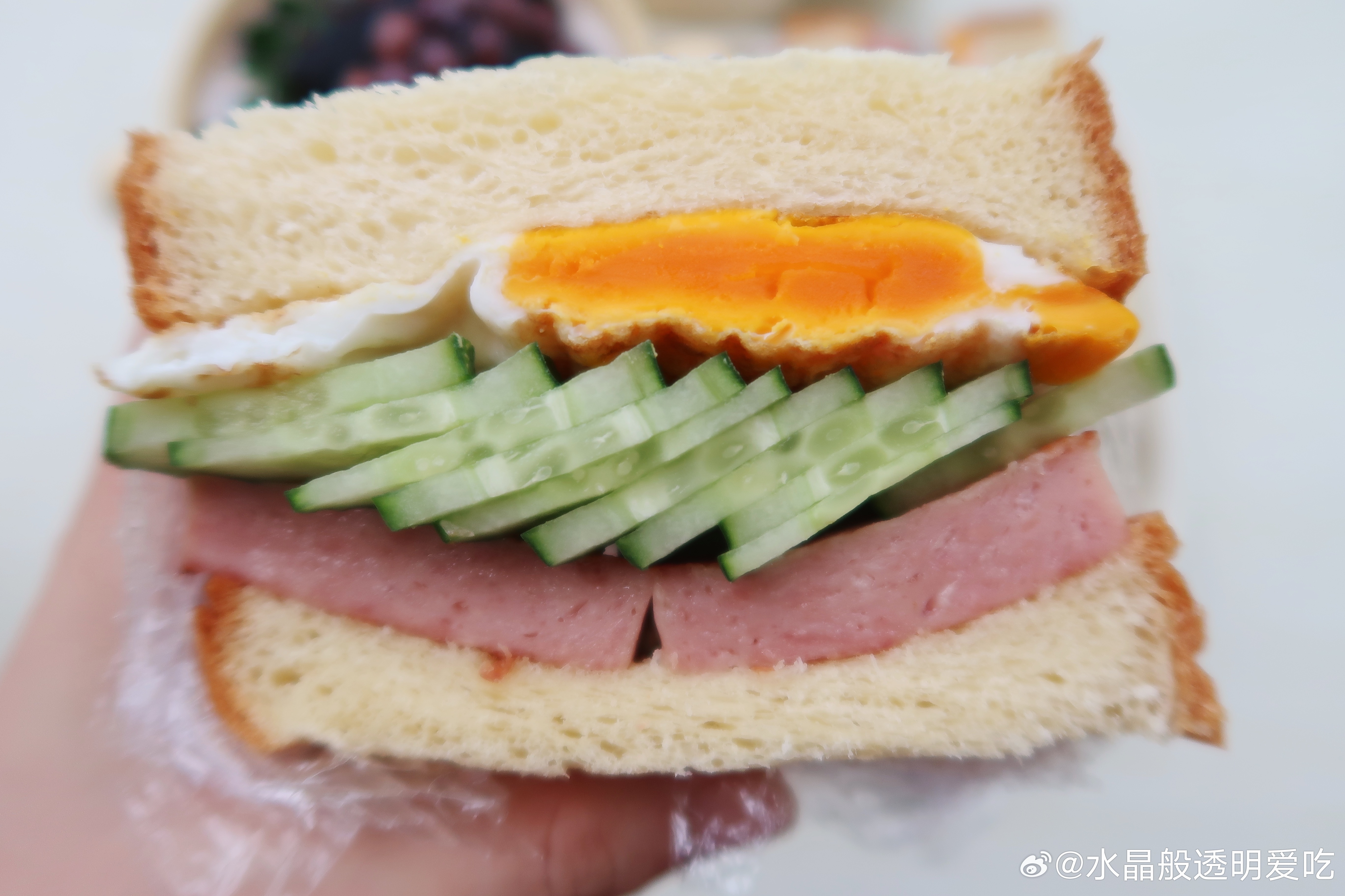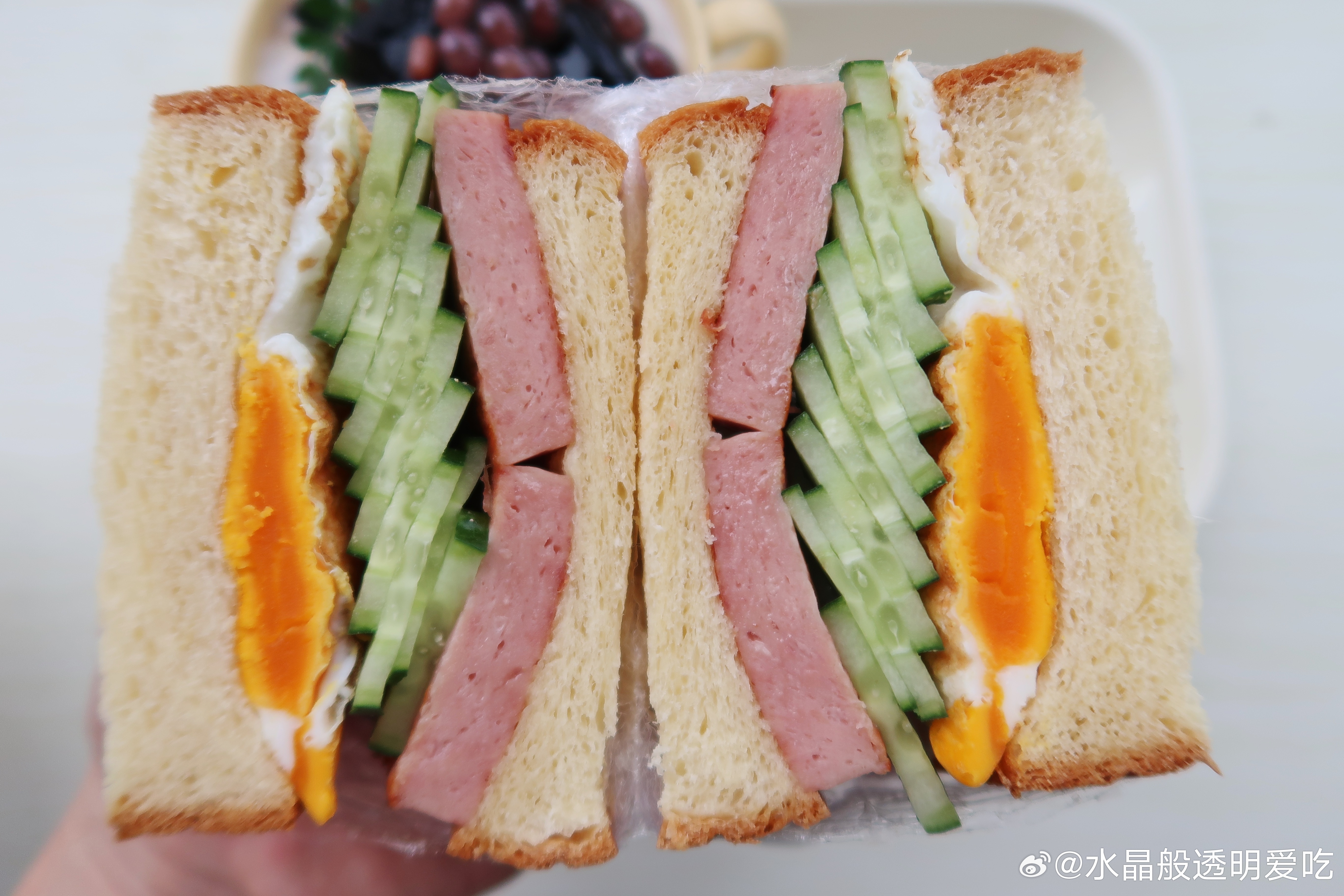 今天吃三明治,晚上做了牛奶吐司,早上煎个鸡蛋加两片午餐肉,再放上黄瓜片,轻松搞定美味黄瓜火腿三明治.做了红豆烧仙草,做好的仙草冻挖几勺,放上红豆爆珠,加上牛奶和炼乳,美滋滋.