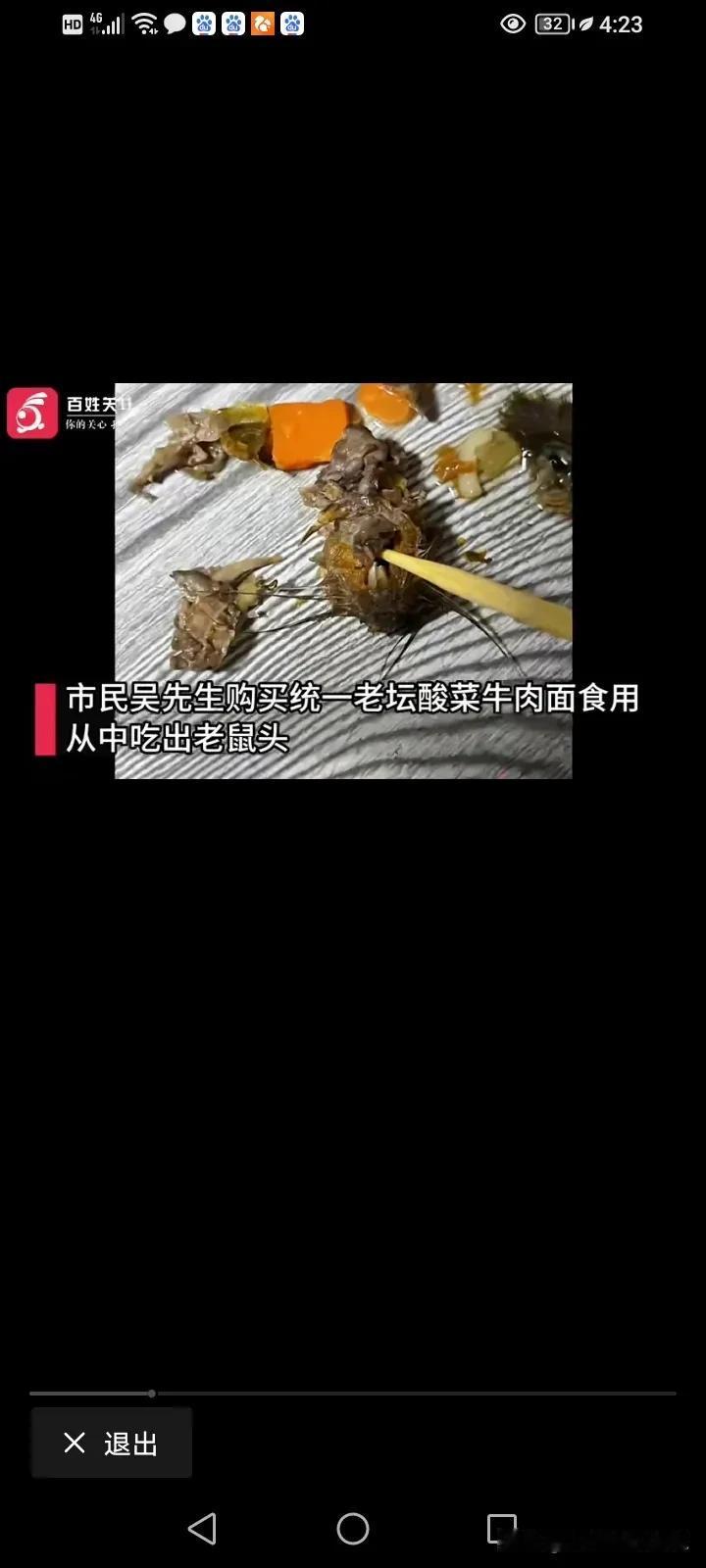 又现鼠头事件,老坛酸菜回应了!7月14号晚上,一名男子在一个小卖店里面买了一盒老坛酸菜面,他一边刷着抖音,一边吃面,面吃完之后他就开始吃了一包酸菜,突然嚼着一个很腥且满嘴都是毛的东西,男子赶紧把它吐了出来,一探究竟。 一看吓一跳,浓密黑色的毛发,还有两颗锋利的牙齿,一看就是米奇头! 男子觉得好恶心,但要确认这个事情的真实性,他让网友们做个见证,开起来直播,让网友们看看自己有没有看错,网友们纷纷表示,就是老鼠掉进了酸菜缸里了,网友还支持他上报CCTV。 这件事情在网络发酵之后,昆山统一食品有限公司的工作人员已经做出回应:“已经安排专员与消费者联系,进一步确认!” 没想到又选鸭脖鼠头事件,这次证据确凿,看看他们是怎么公关的? #记录我的2024#