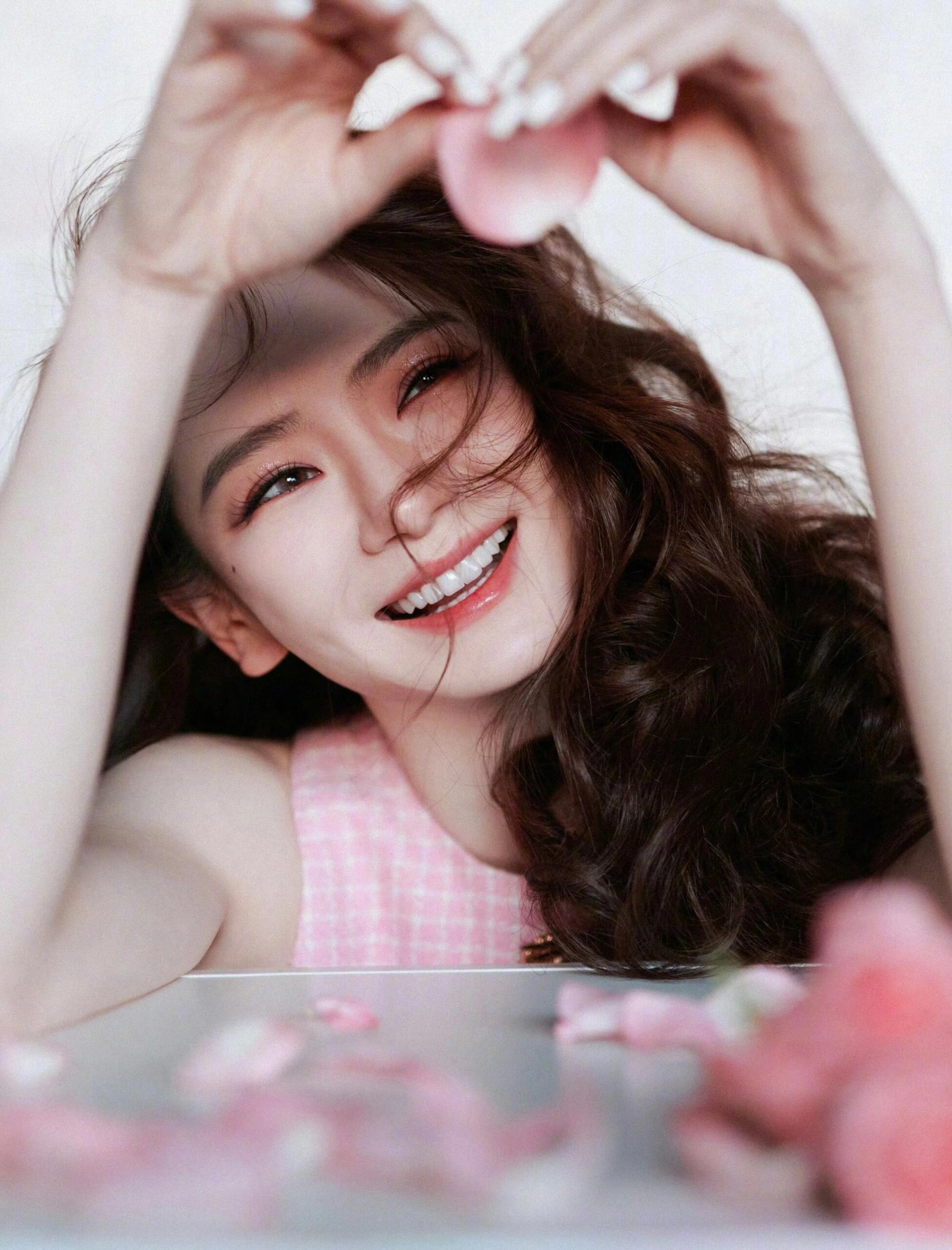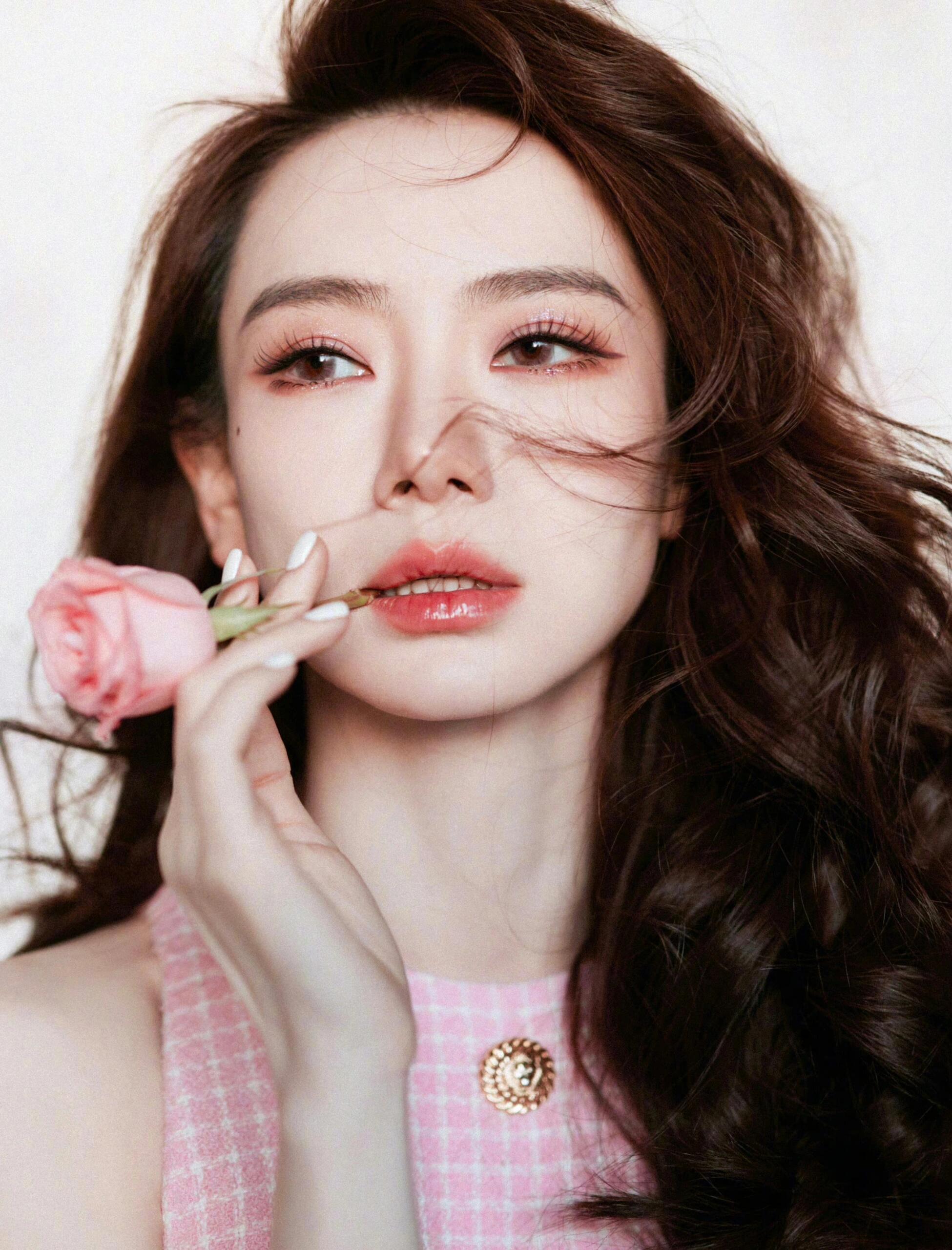 刘亦菲把死亡玫粉穿出了定制款的感觉,这种颜色普通人穿上分分钟黑三度,她居然能穿出
