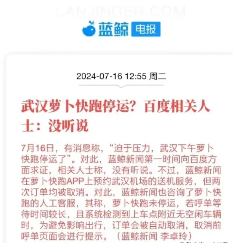 有消息称,武汉街头的萝卜快跑自动驾驶车辆,似乎出现了运营数量下降的现象? 一些网友表示,近来看到的萝卜快跑车辆比以往少了些。 就此情况,经询问武汉交通管理部门的工作人员,对方回复称,目前尚未收到有关运营车辆减少的官方数据或通知。 那么,萝卜快跑这项备受瞩目的自动驾驶服务,难道只是昙花一现? 信息来源:蓝鲸新闻