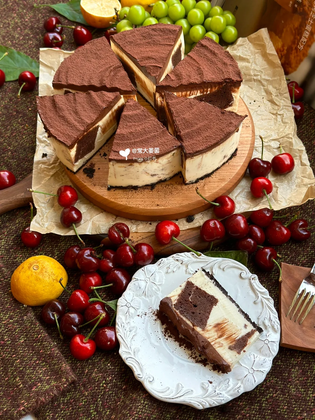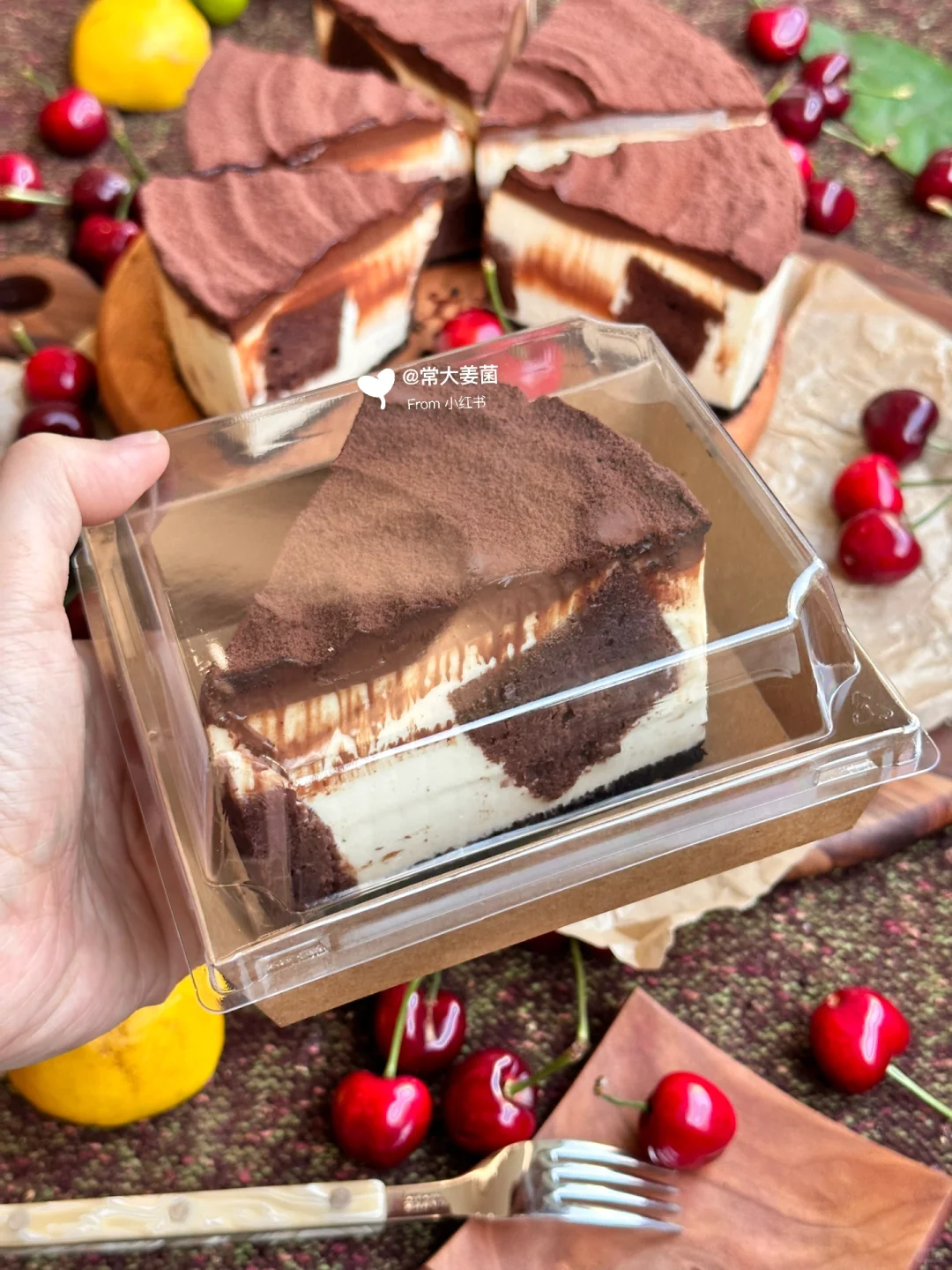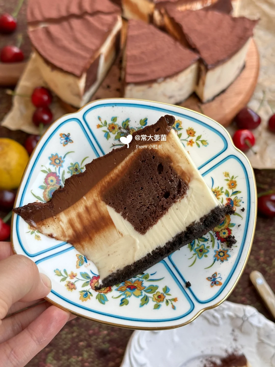 这款布朗尼蛋糕!我直接给它封神!! 黑巧含量巨高的布朗尼,夹在芝士慕斯层里,😋一吃一个不吱声!
