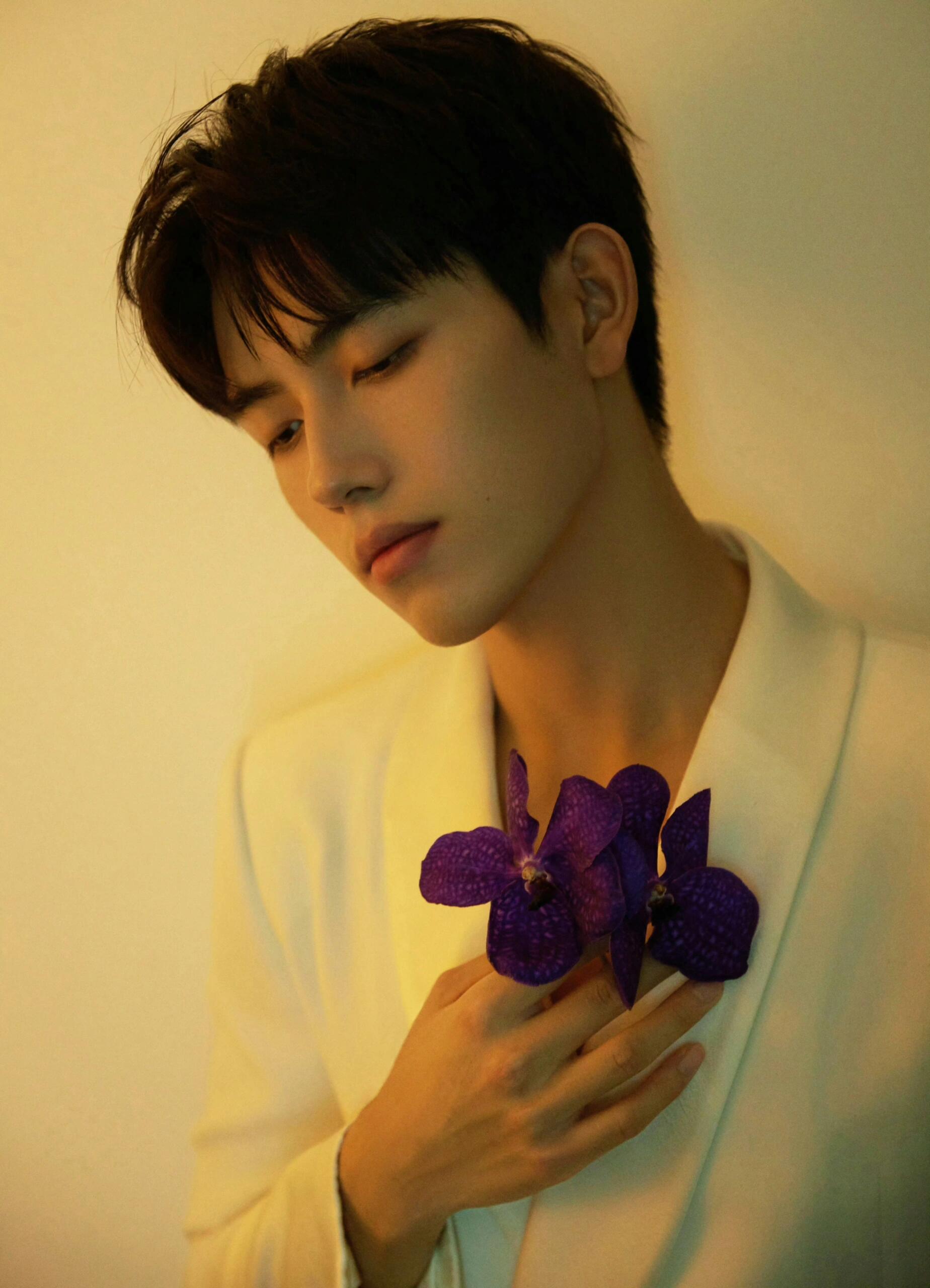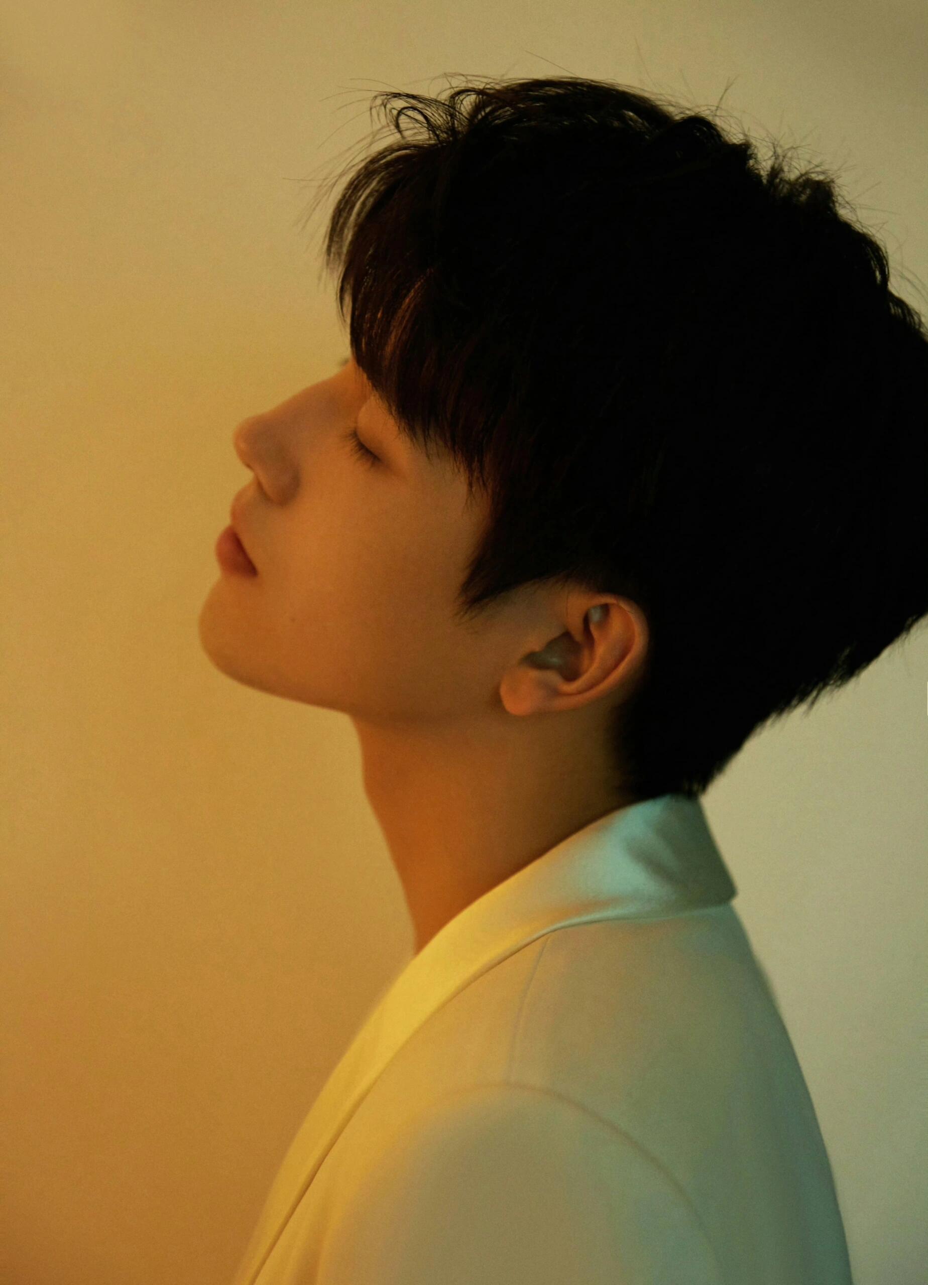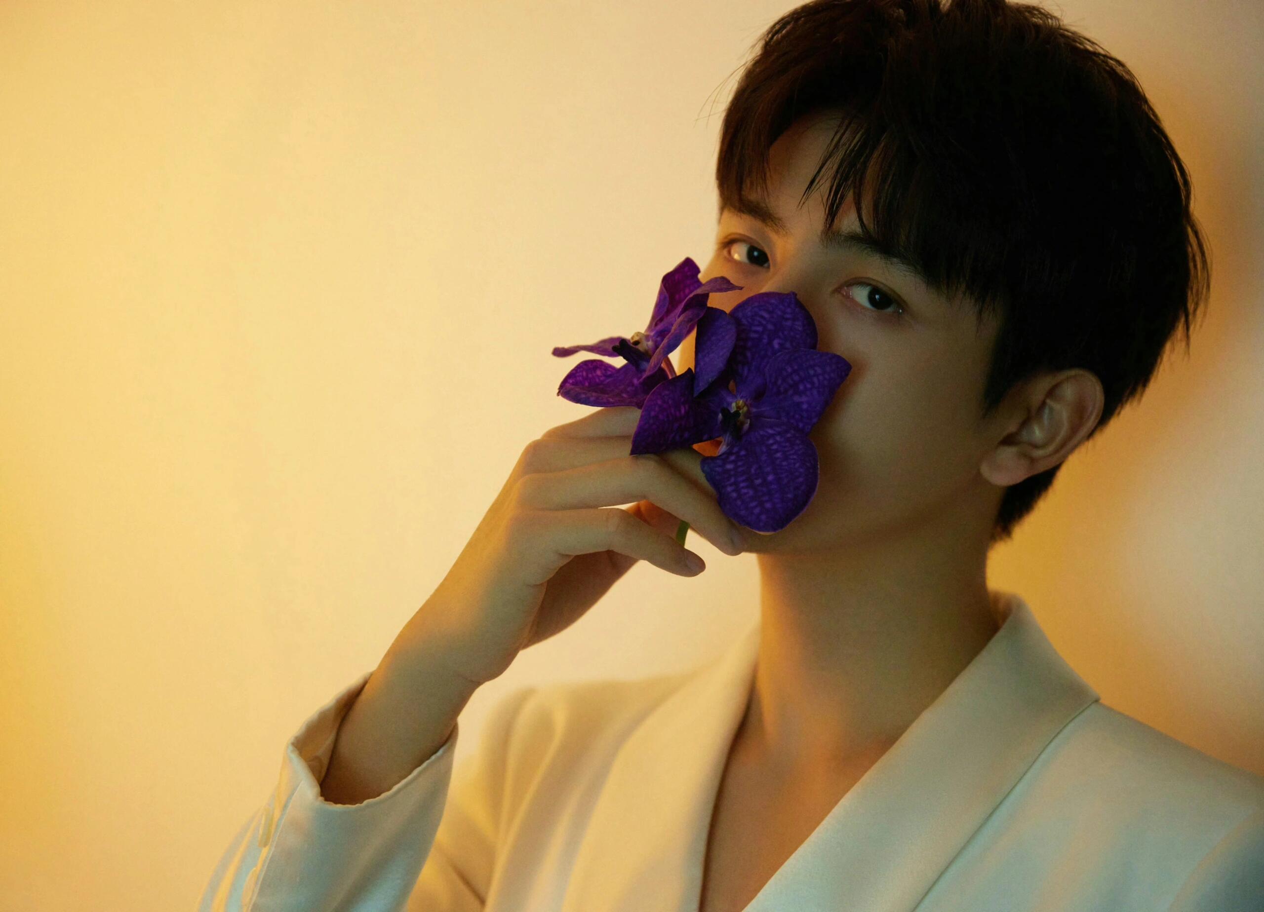 陈飞宇品牌活动造型,光影映衬五官轮廓,一身简约白色西装,清俊少年绅士格调。
