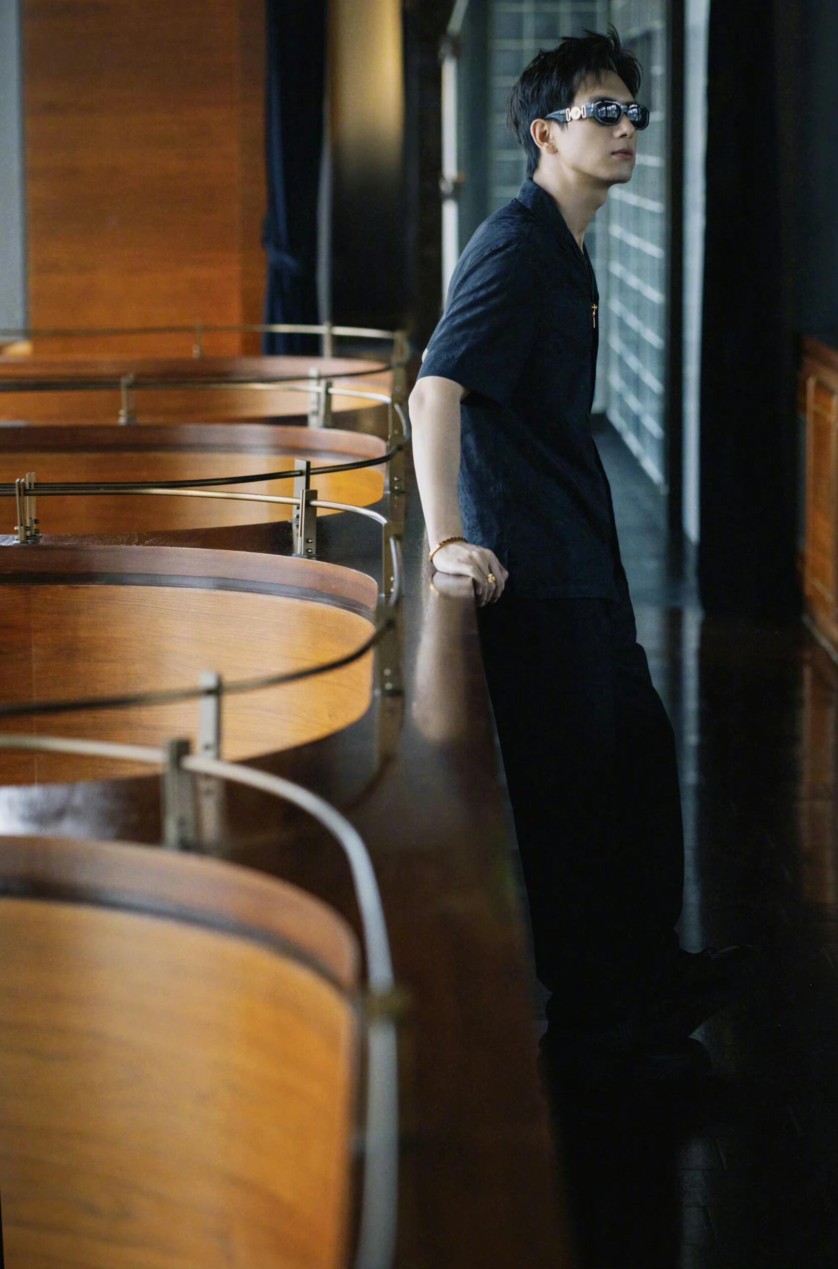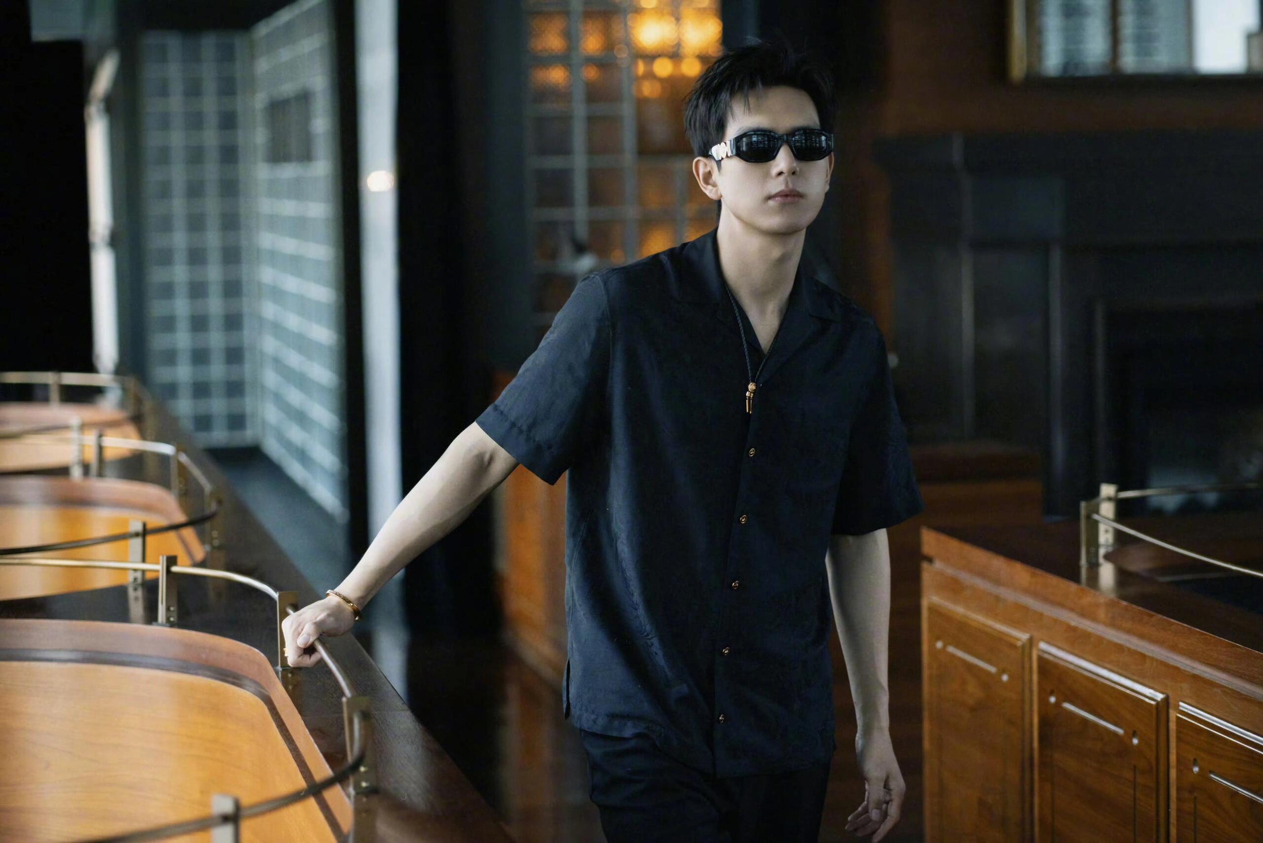 李现活动造型,简单黑色穿搭,金色配饰点缀,酷帅墨镜加持,一派轻松型男腔调,弥漫着“现男友”的魅力气息