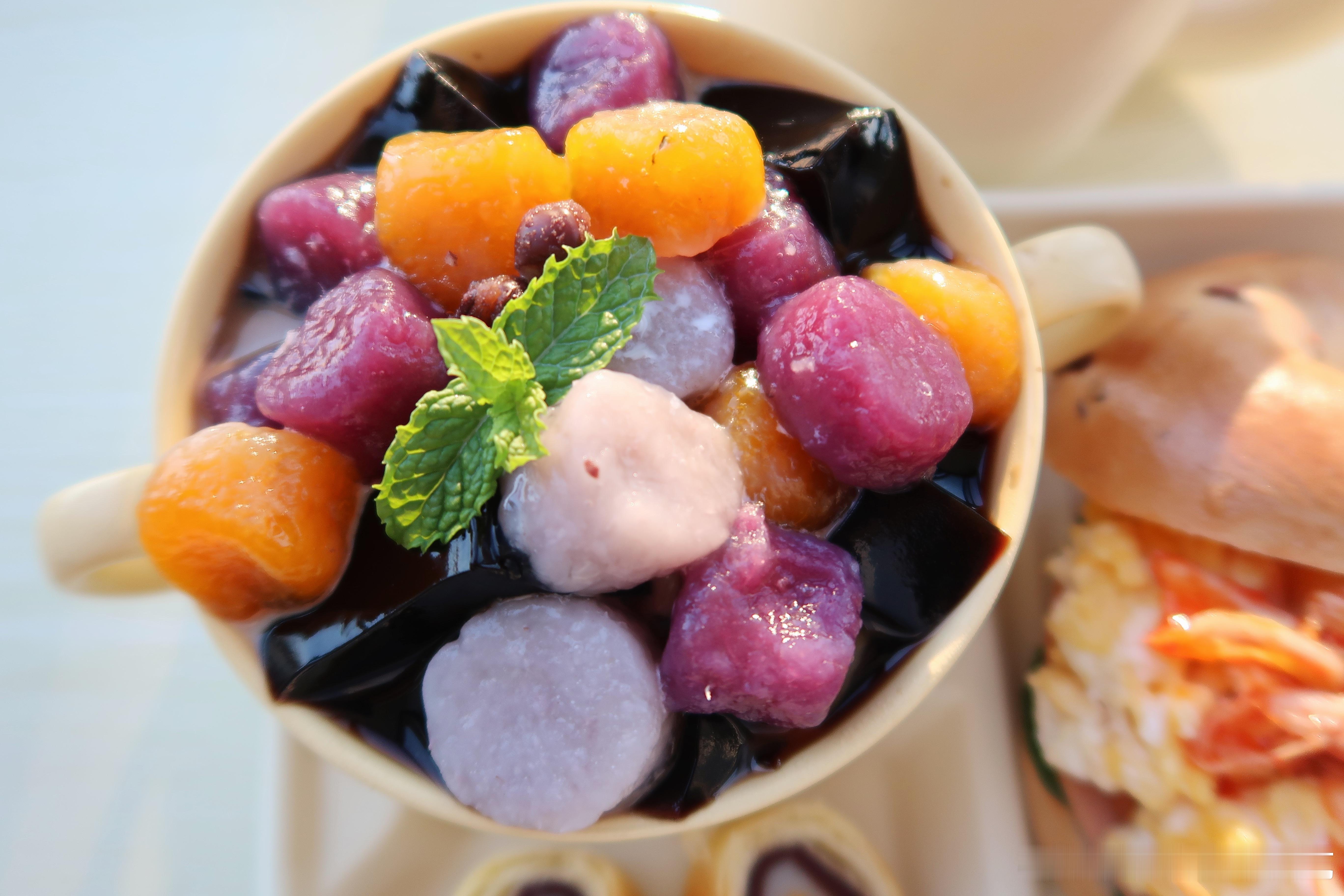 周末煮了烧仙草、搓了芋圆、熬了蜜红豆,早晨美美的吃上一碗芋圆红豆烧仙草,美滋滋.