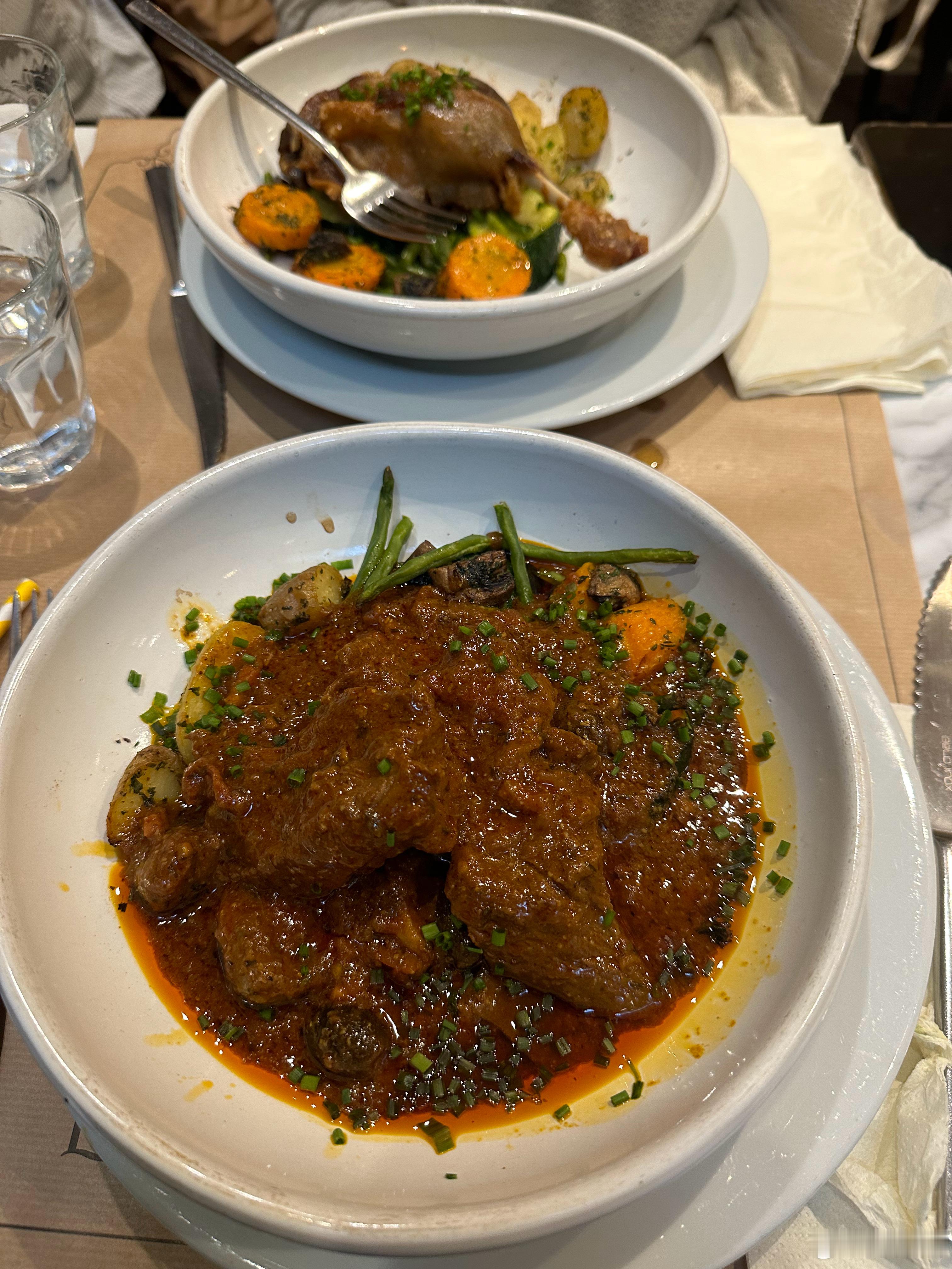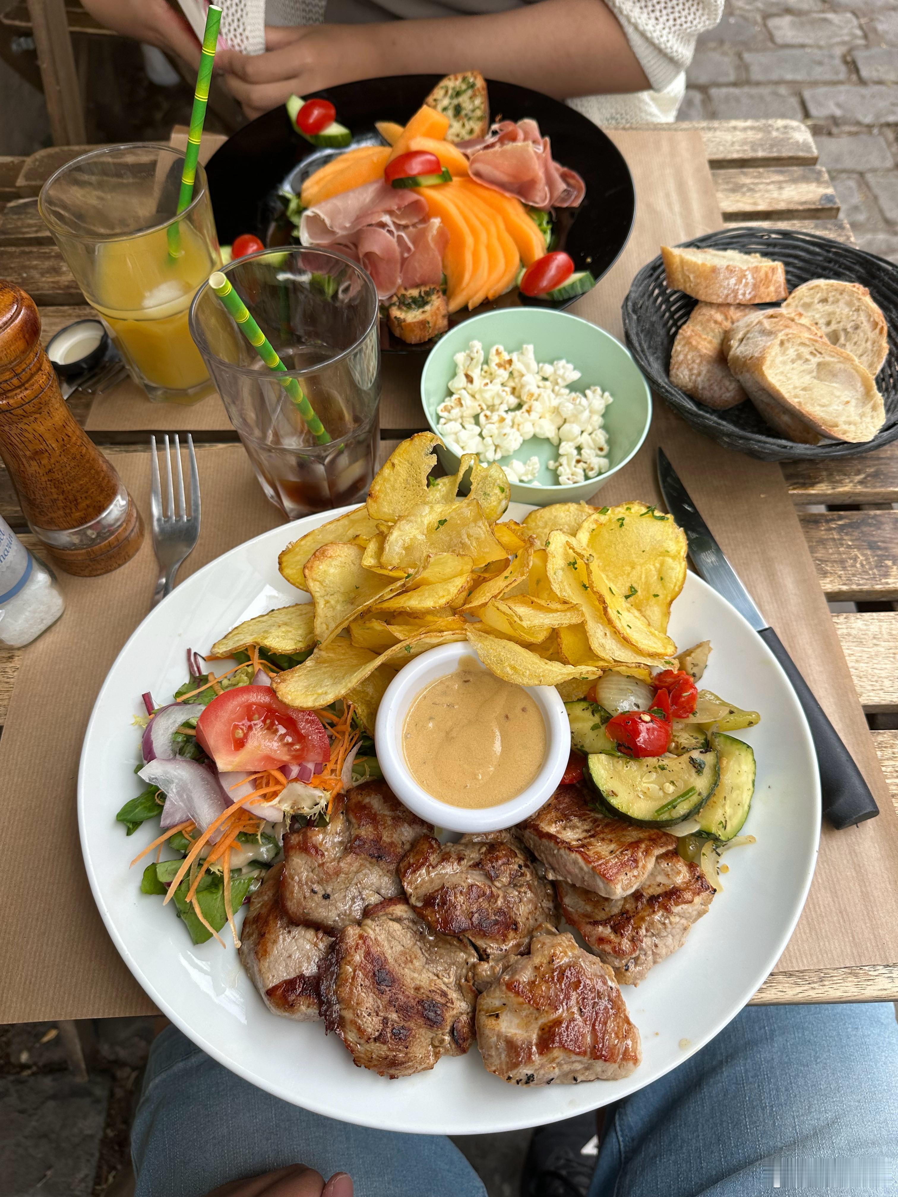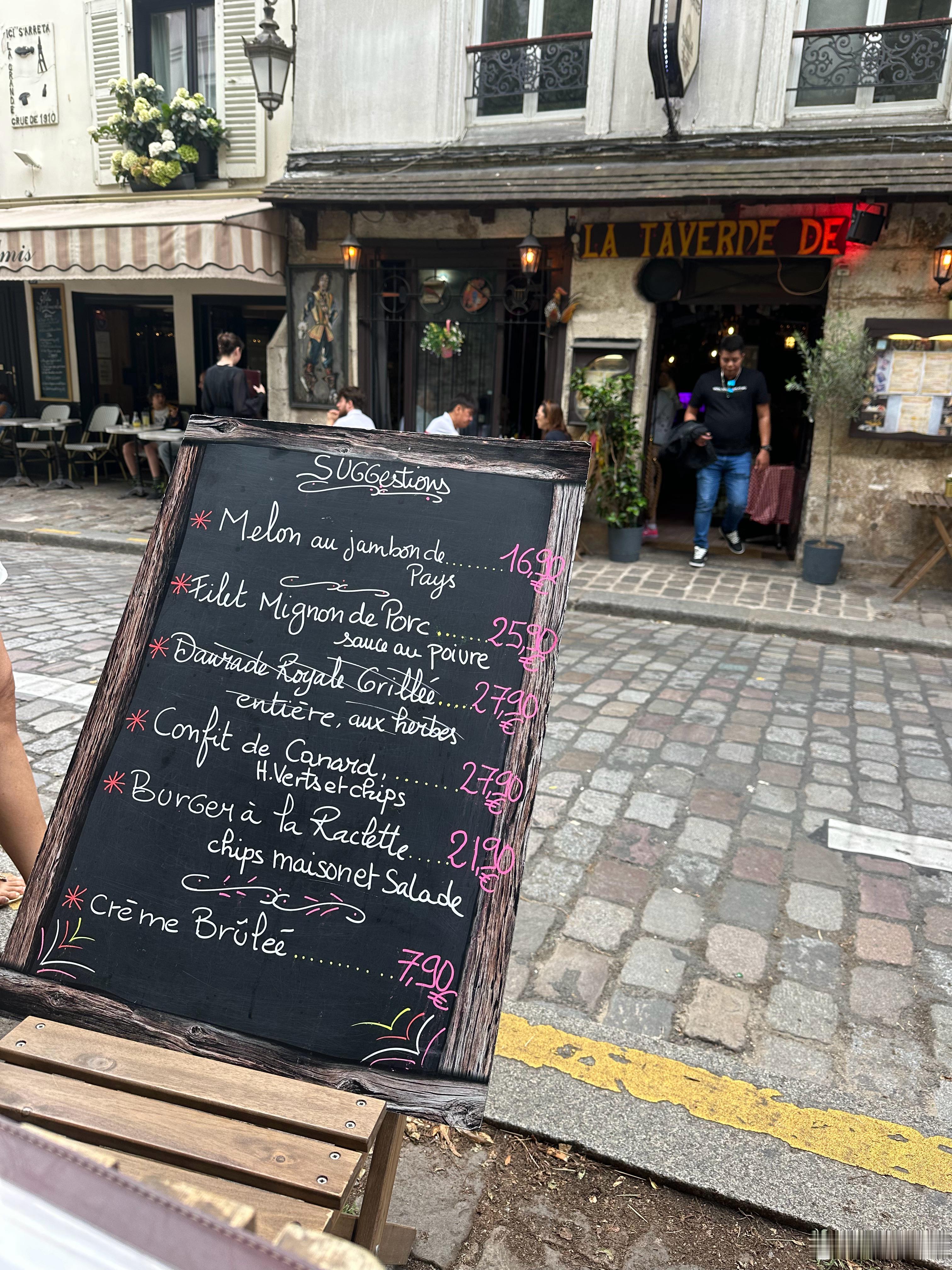 【图10~12】在蒙马特高地(属于景区,类似于北京的798,游客多,本地人少),找了一家谷歌评分最高的餐厅,价格大概人均30欧元。