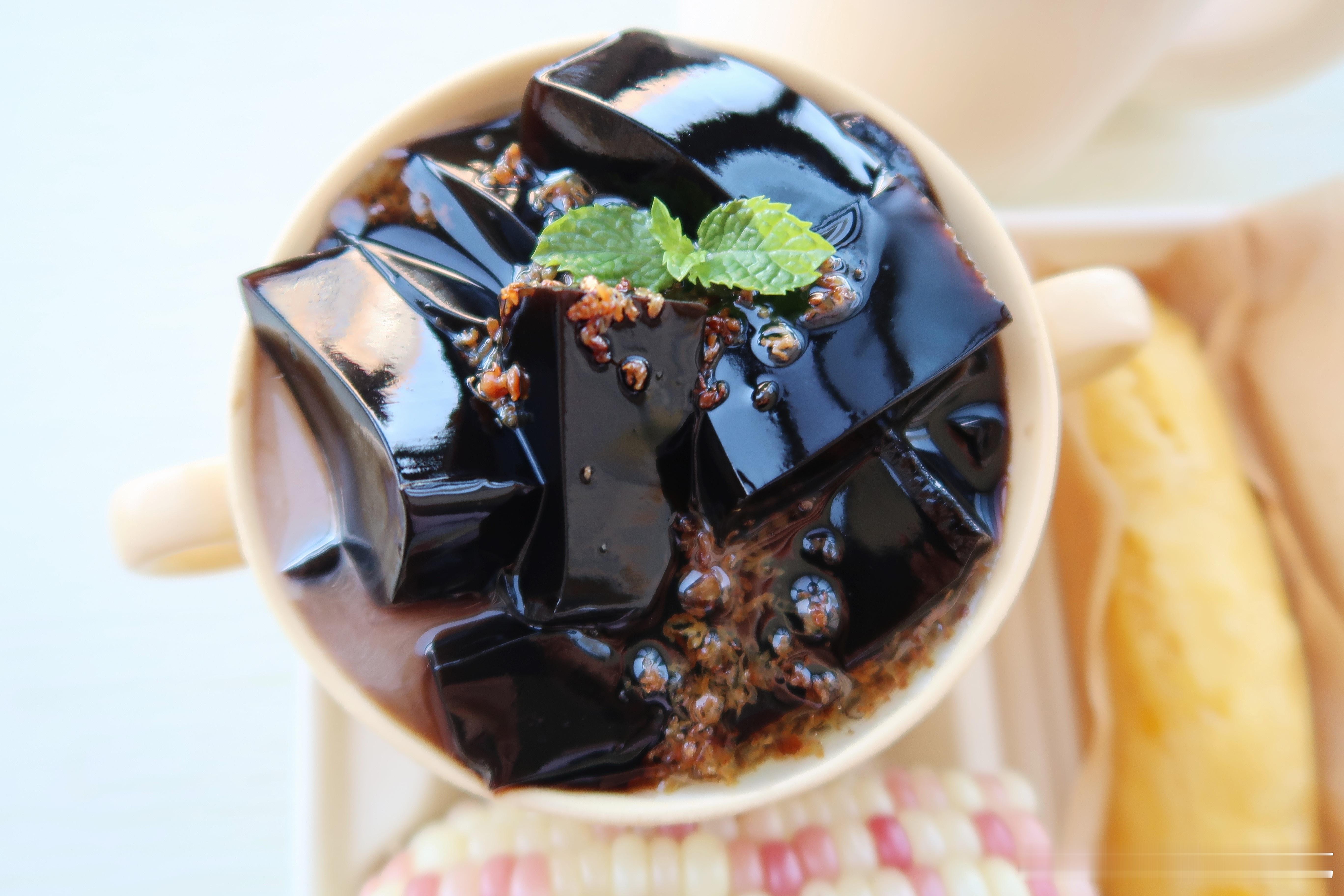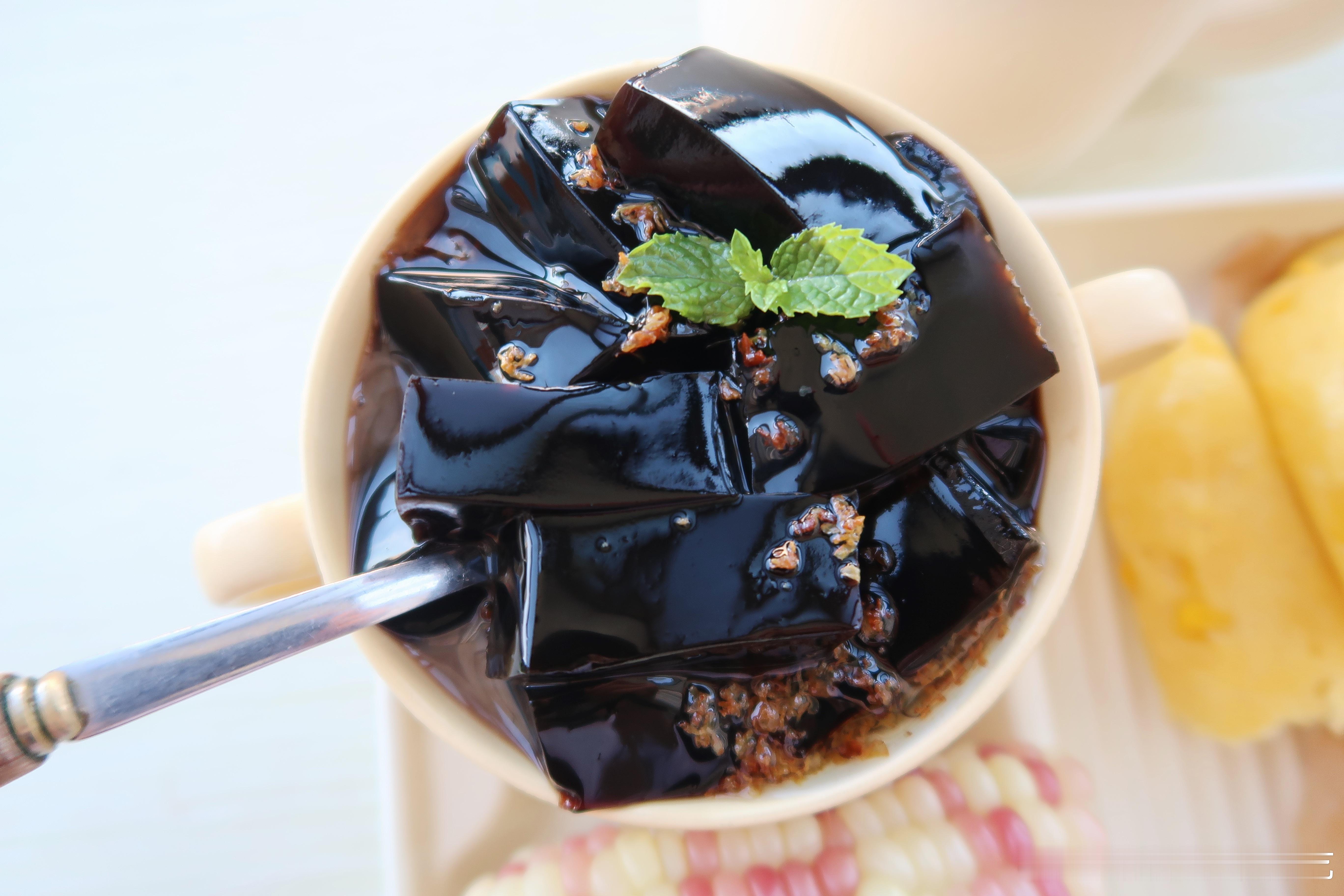 今天吃玉米粑粑,盒马的这款玉米粑粑还挺好吃的,软糯香甜,里面还有玉米颗粒,玉米味很浓.做了烧仙草,仙草冻里面倒上牛奶,淋上桂花蜜,清凉解暑又好吃.