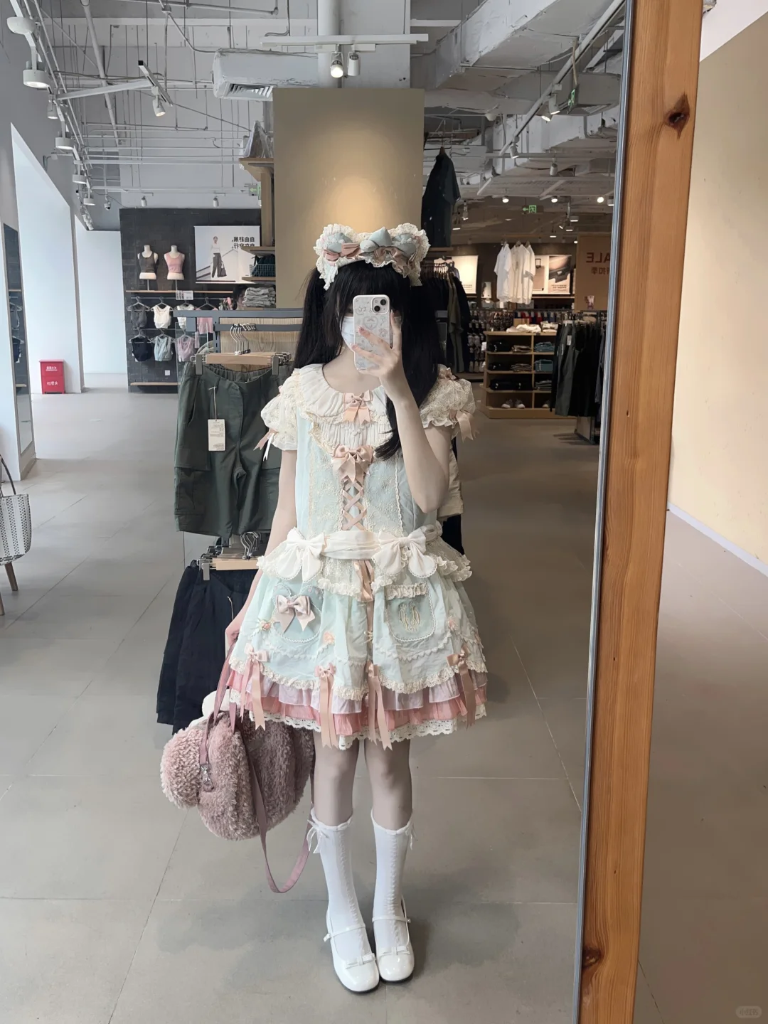 这小萝莉腿长惊人,小熊桶子还能穿出日常可爱,KC饰品真是点睛,拍照灵感get√